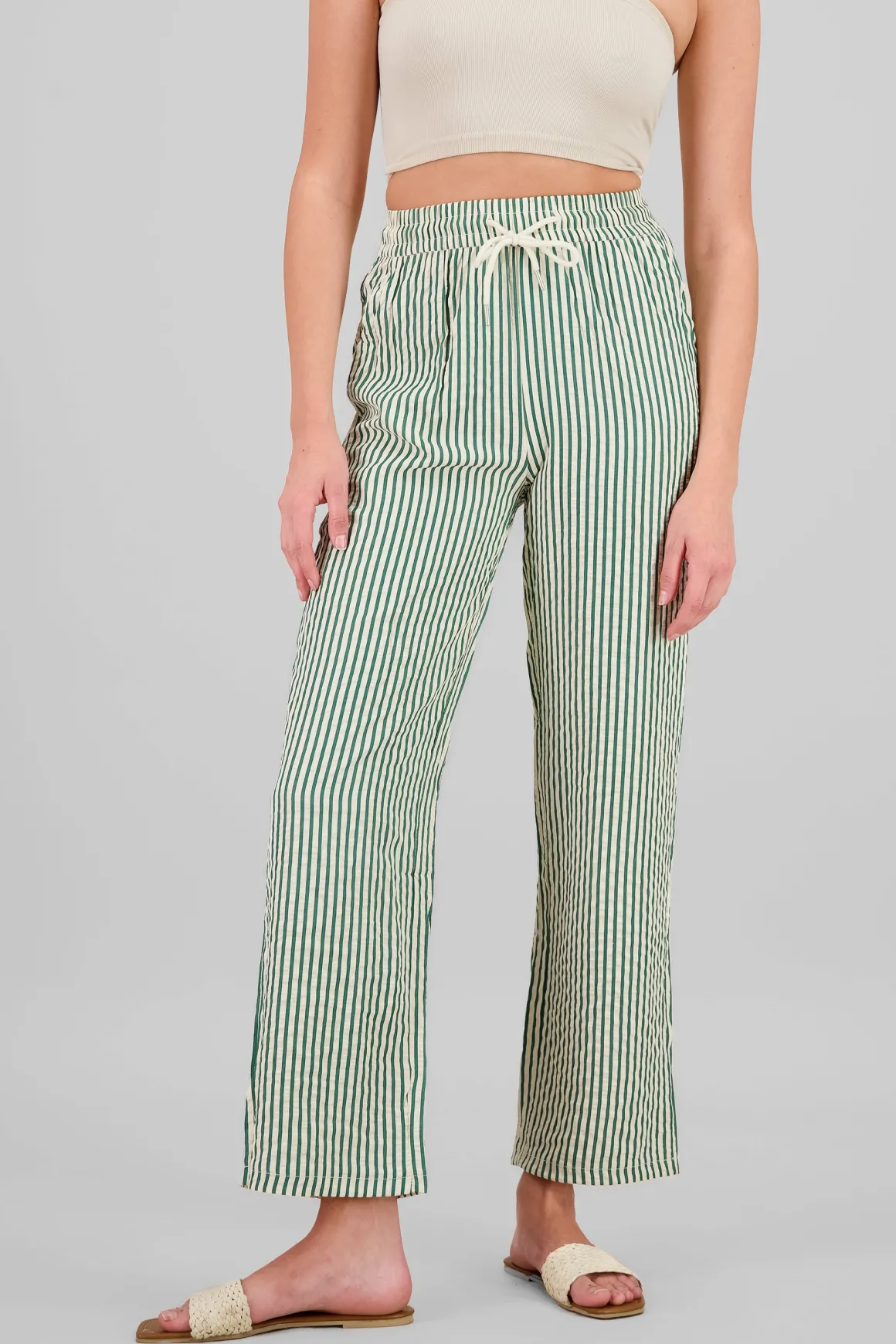 ¡Atrévete a jugar con tu estilo! Este pantalón de rayas es la pieza que necesitas para hacer que tu outfit sea inolvidable. Su diseño único y divertido le dará un toque especial a tu guardarropa, ideal para cualquier ocasión.
