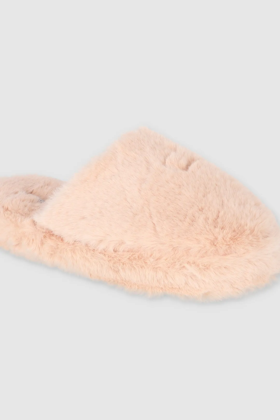 Pantuflas en tejido de peluche. Las suelas rígidas proporcionan soporte, mientras que el forro en tejido suave mantiene tus pies cómodos y cálidos.