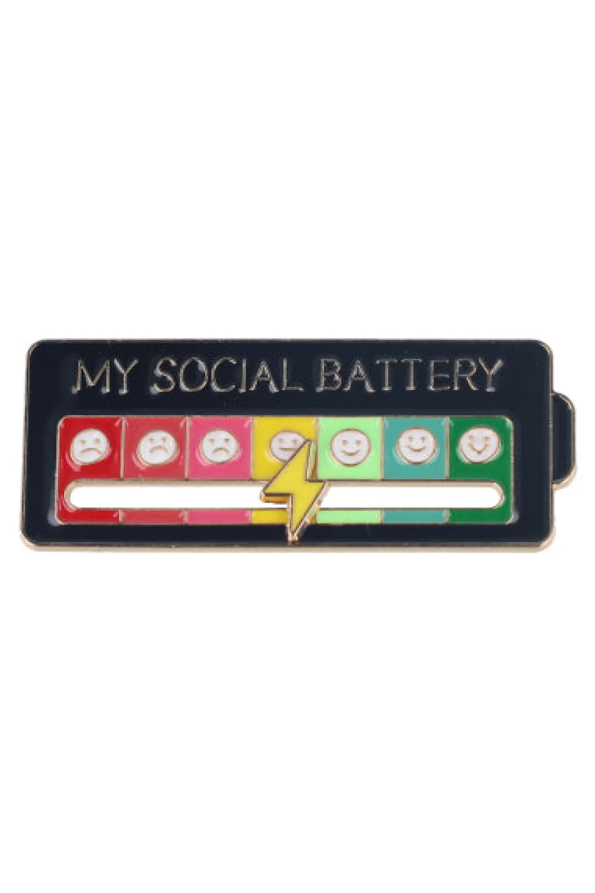 Pin metálico de batería social multicolor con acabado brillante. Cierre con broche de presión. La mejor opción para añadir un toque creativo a tu look todos los días.