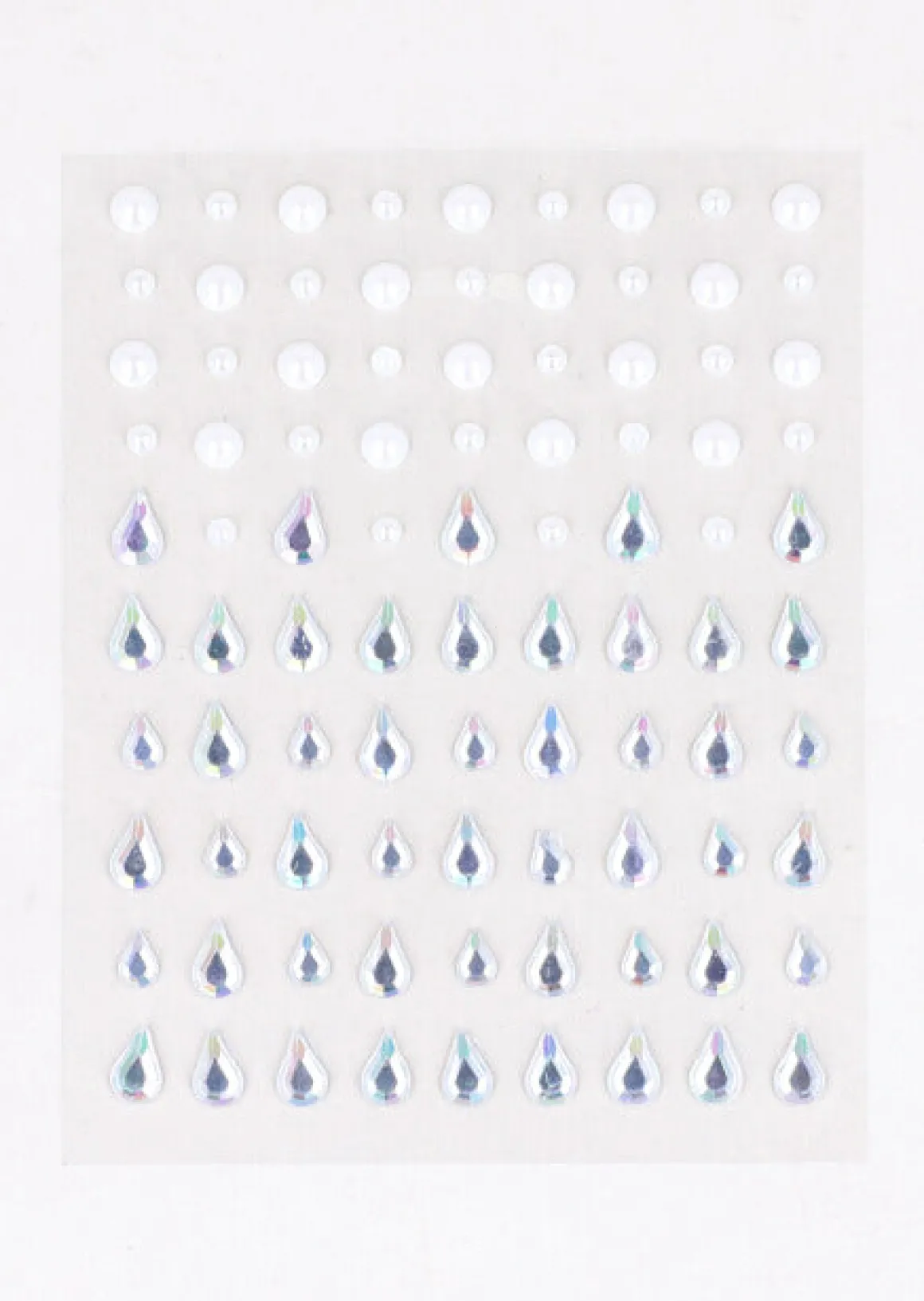 Plantilla de brillos mixta autoadheribles con forma de gota y perlas.