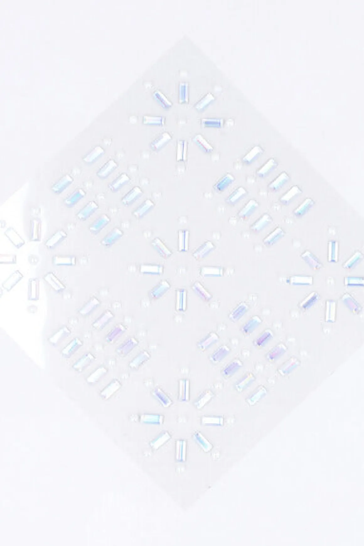 Una hoja de pegatina con gemas iridiscentes en diseño rectangular y perlas con efecto nacarado..