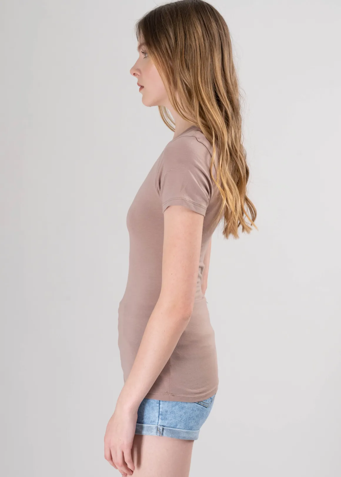 Playera de manga corta con escote v en color sólido.
