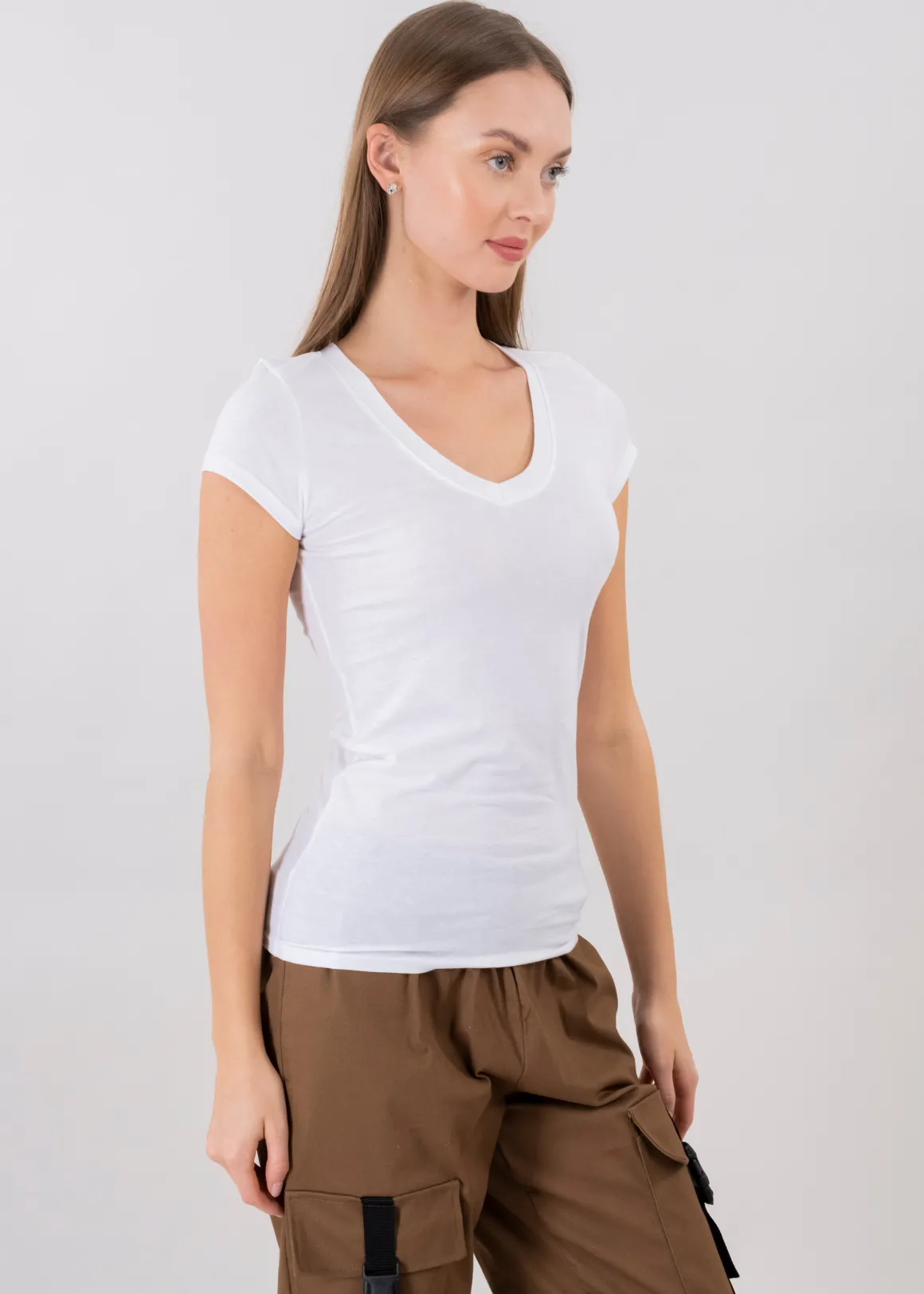 Playera básica lisa de manga corta y cuello v.