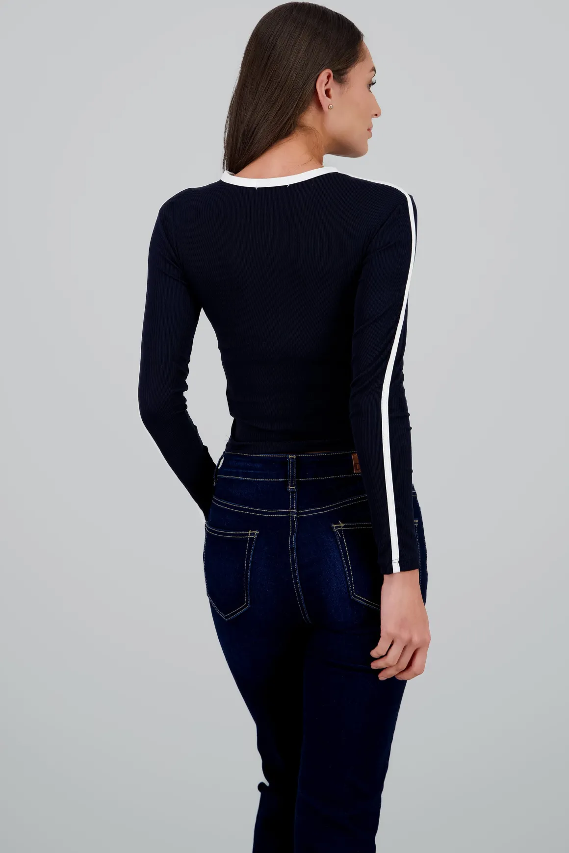 - Manga larga para un estilo versátil en distintas temporadas.