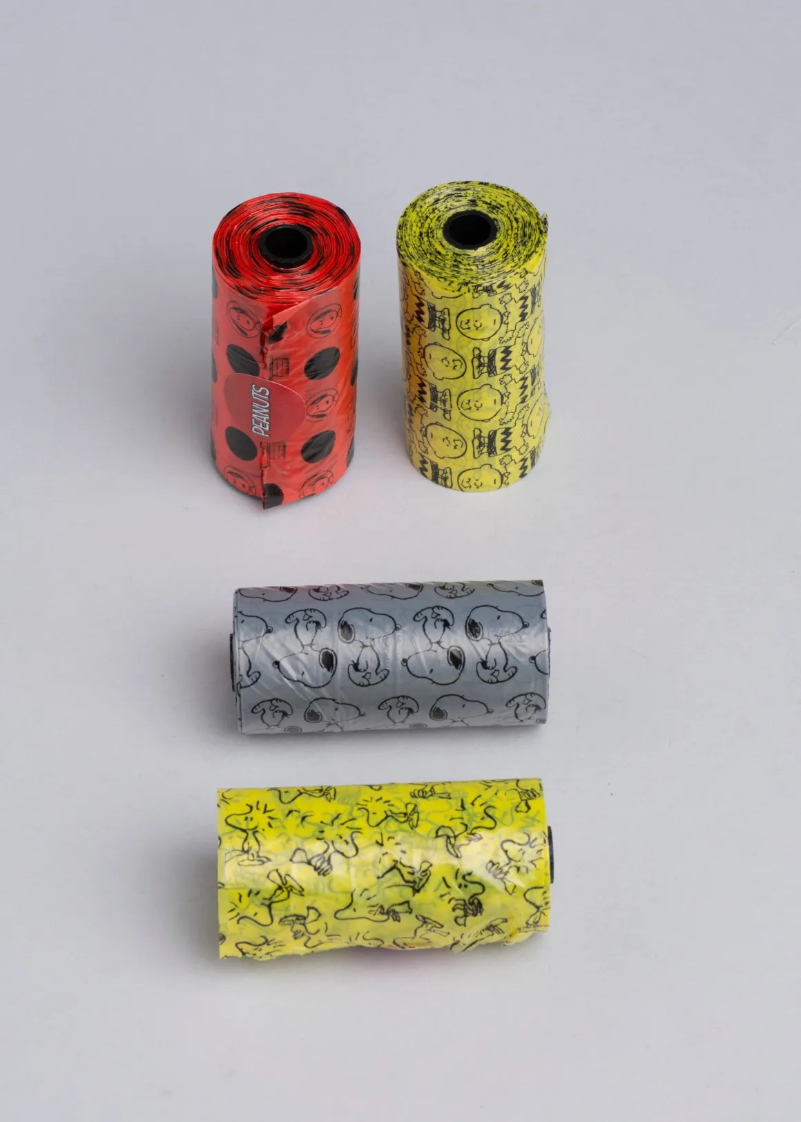 Este set de repuestos de bolsas para mascota con diseños de Peanuts es perfecto para los paseos.