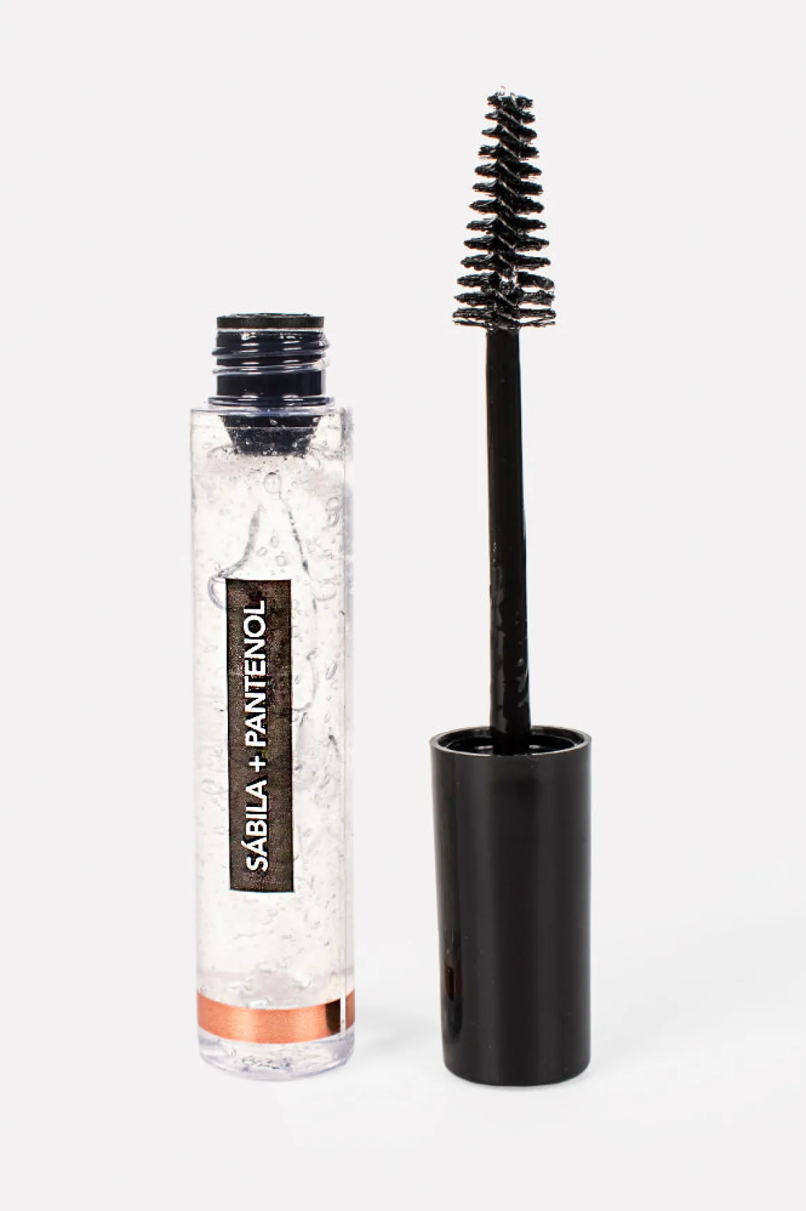 Máscara de pestañas con cepillo de fibras gruesas. Fórmula de gel transparente con sábila y pantenol. Contenido 13 g. Producto libre de crueldad animal.
