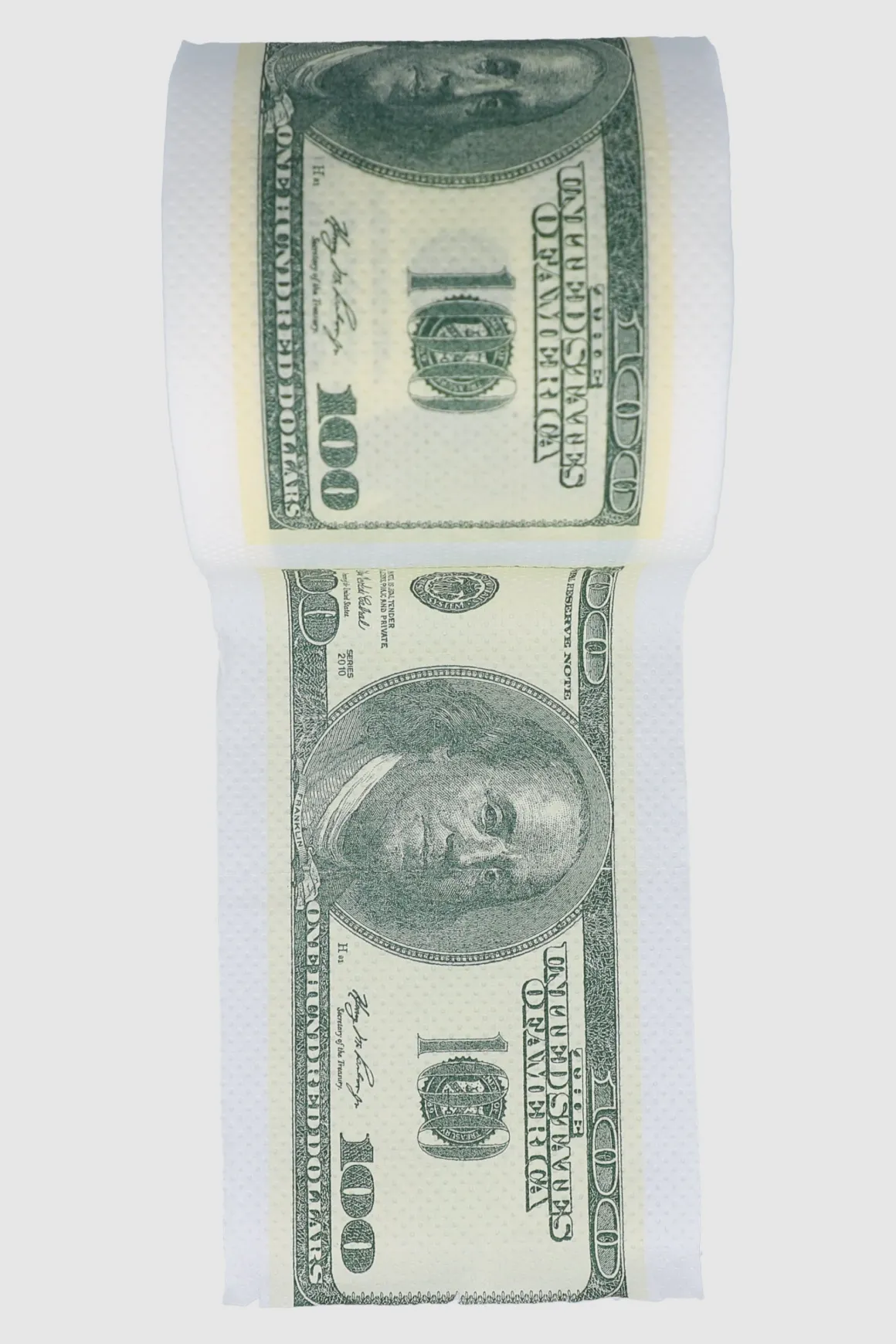 Rollo de papel higiénico con un divertido diseño en simulación de billetes. La textura suave y delicada cuida tu piel y te brinda una experiencia confortable. Es el decorativo ideal para que tu baño luzca de una manera distinta al resto.