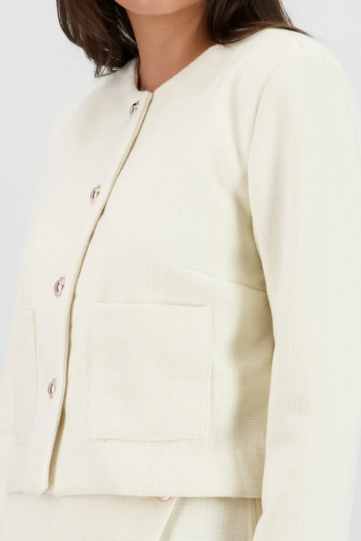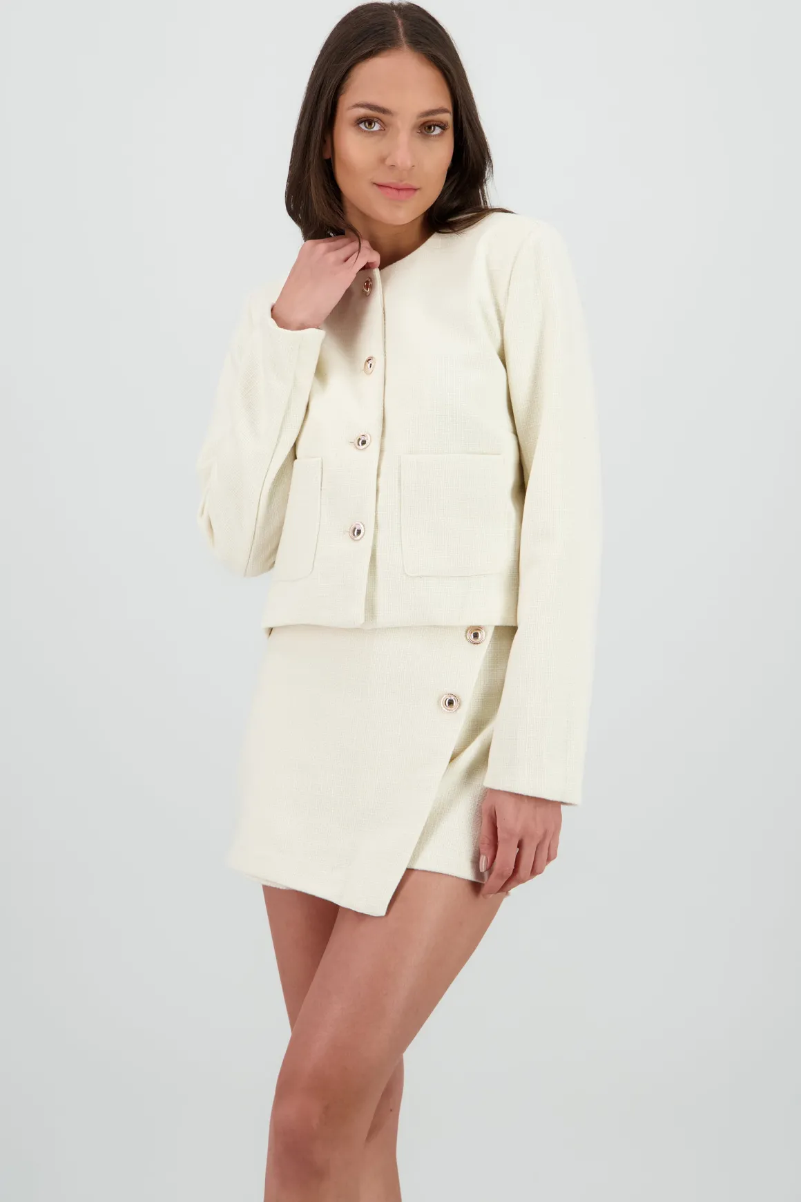 Este saco corto es tu aliado ideal para esos días en los que quieres estar cómoda y con estilo. Su diseño moderno y texturizado añade un toque único a tus outfits, mientras que los botones le dan un giro especial. Ya sea para una salida casual o una reunión con amigos, este saco se adaptará a cualquier ocasión.