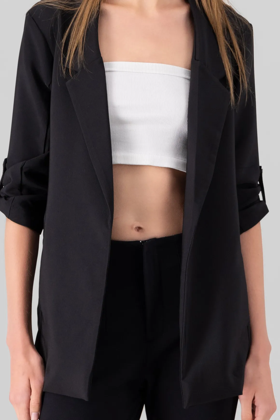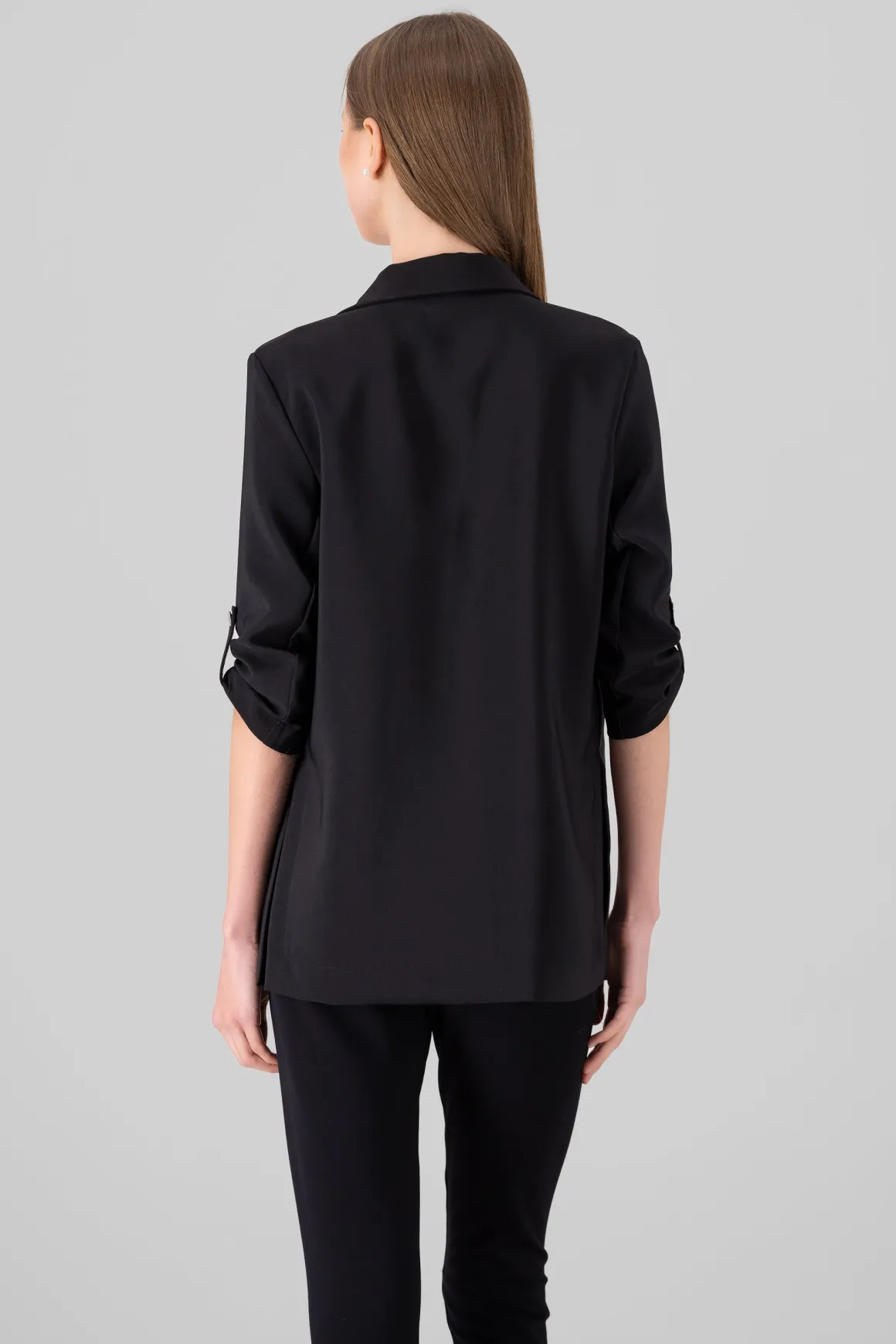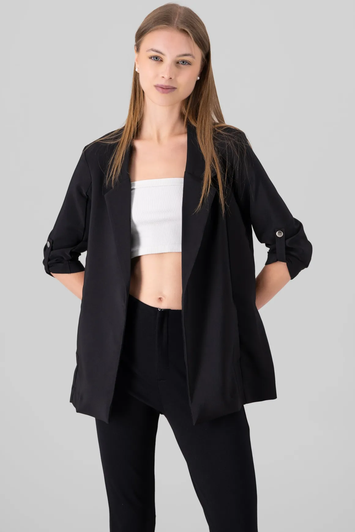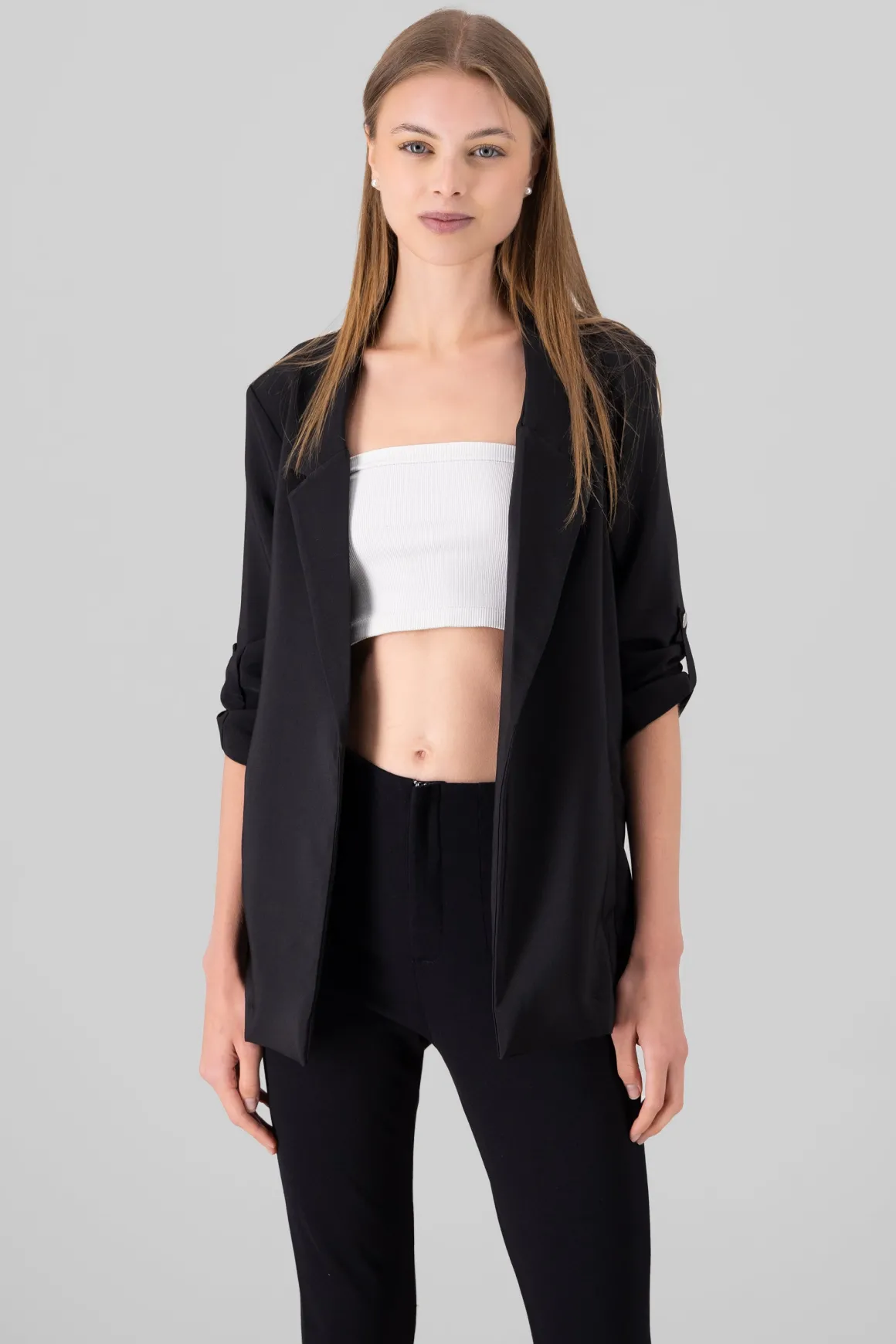 ¡Añade un toque trendy y moderno con este saco liso! Los elevadores en las mangas aportan un diseño distintivo.