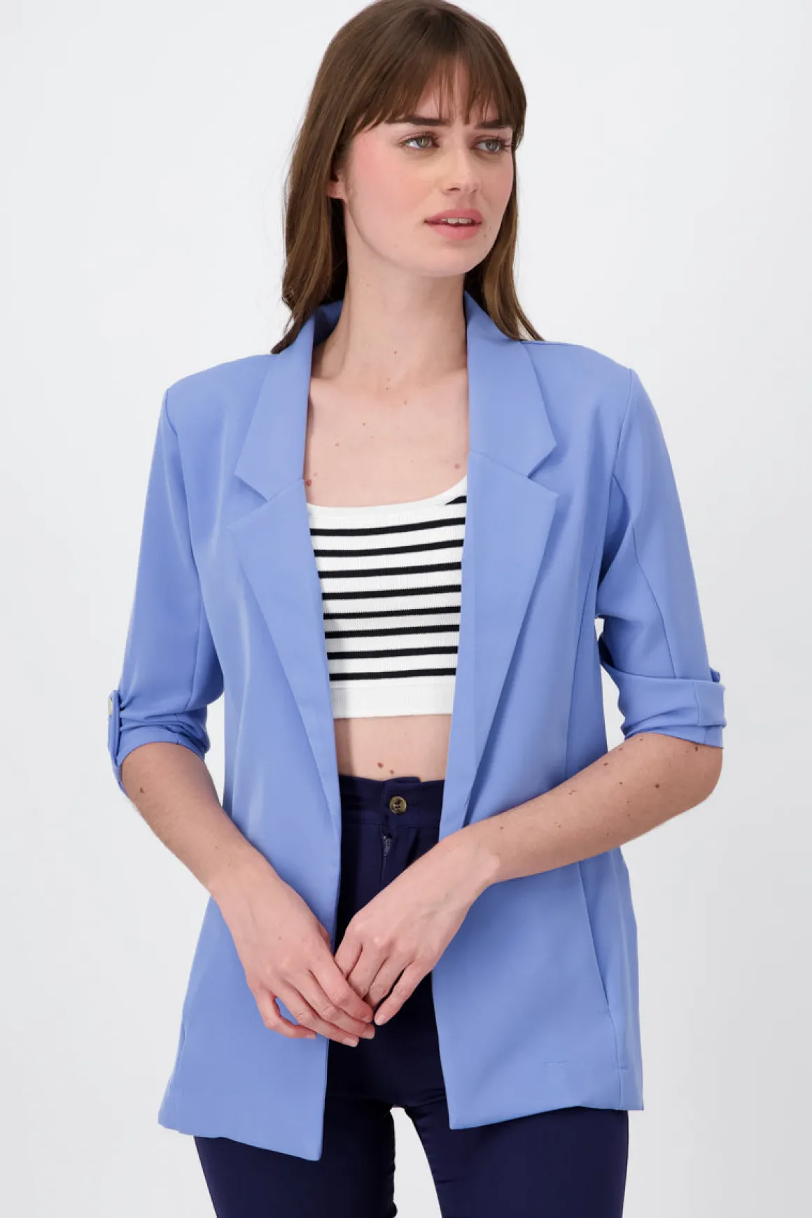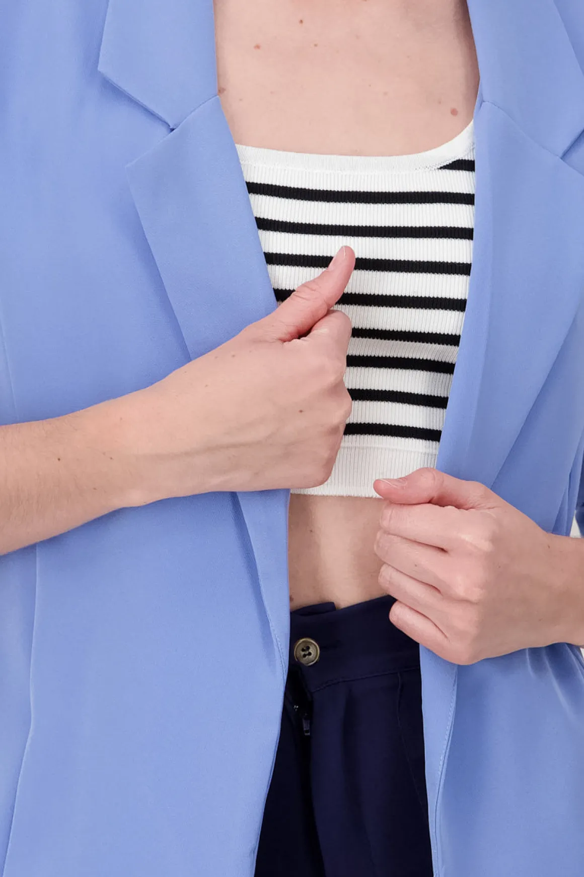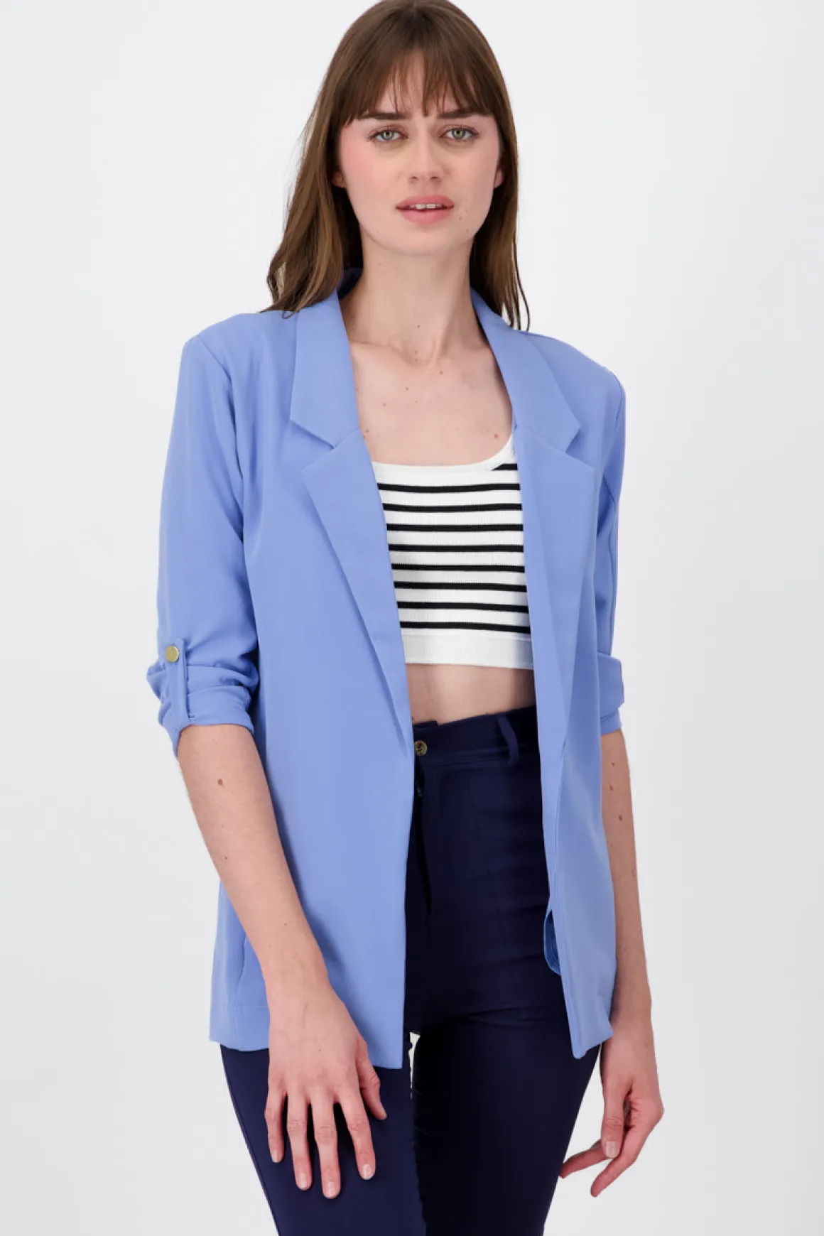 - Saco liso, ideal para combinar fácilmente