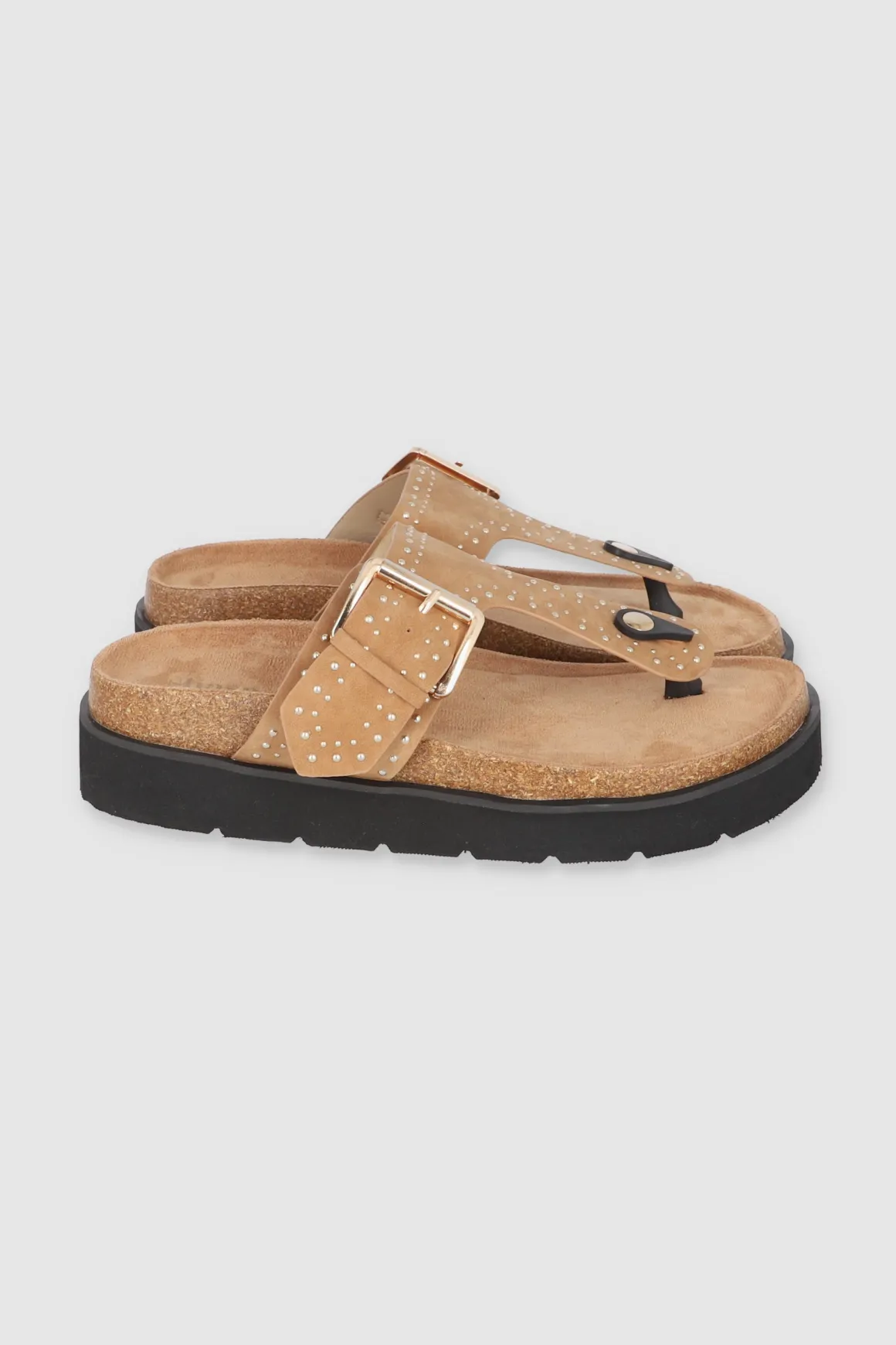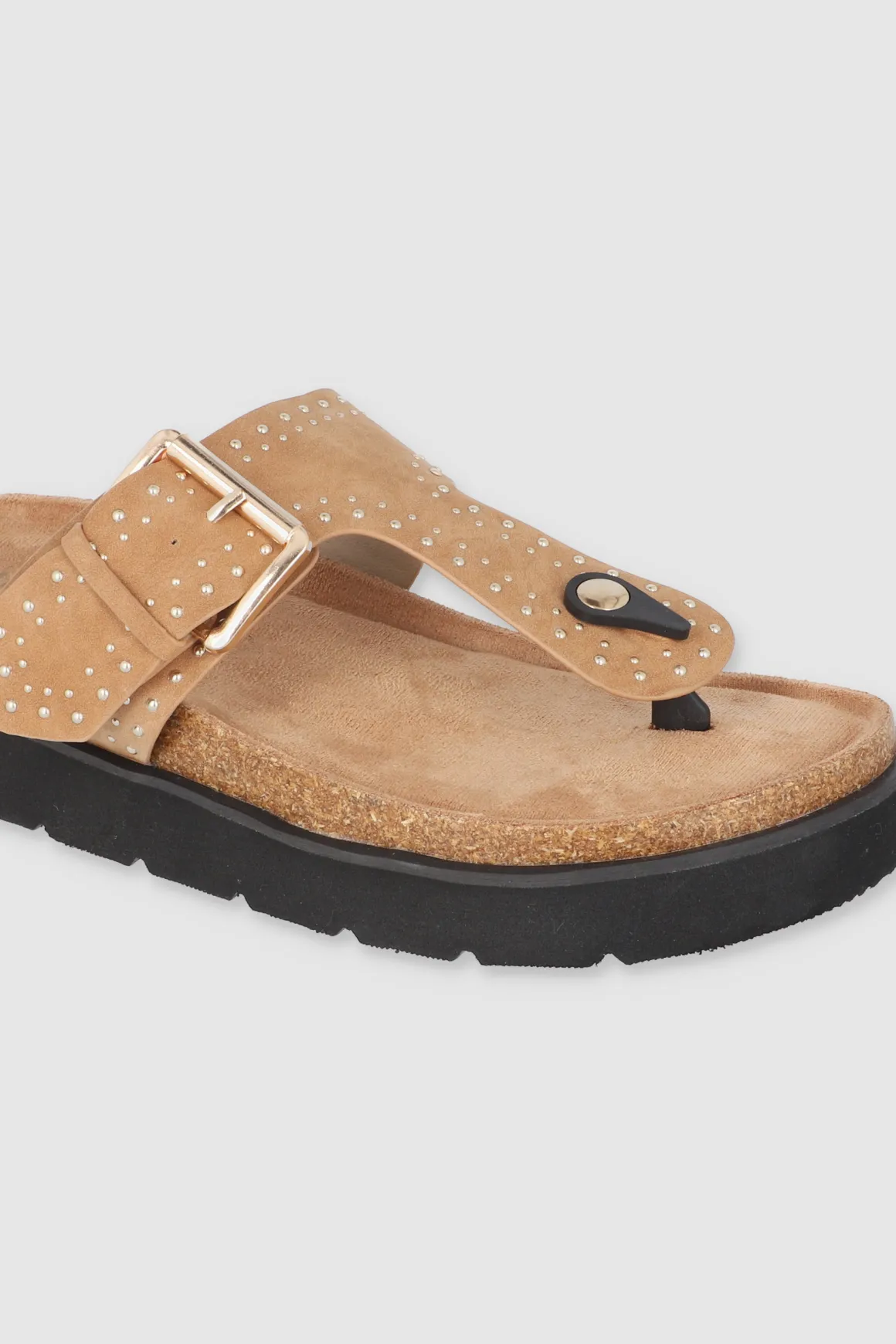¡Atrévete a brillar con nuestras sandalias pata de gallo! Diseñadas para destacar, estas sandalias cuentan con una suela gruesa con un toque de corcho que les da un estilo natural y moderno. Las cintas superiores anchas están decoradas con brillos y una hebilla, añadiendo un detalle chic a tu look. Perfectas para combinar con tus outfits veraniegos y darles ese toque especial que buscas. No te pierdas la oportunidad de hacerte con este par imprescindible.