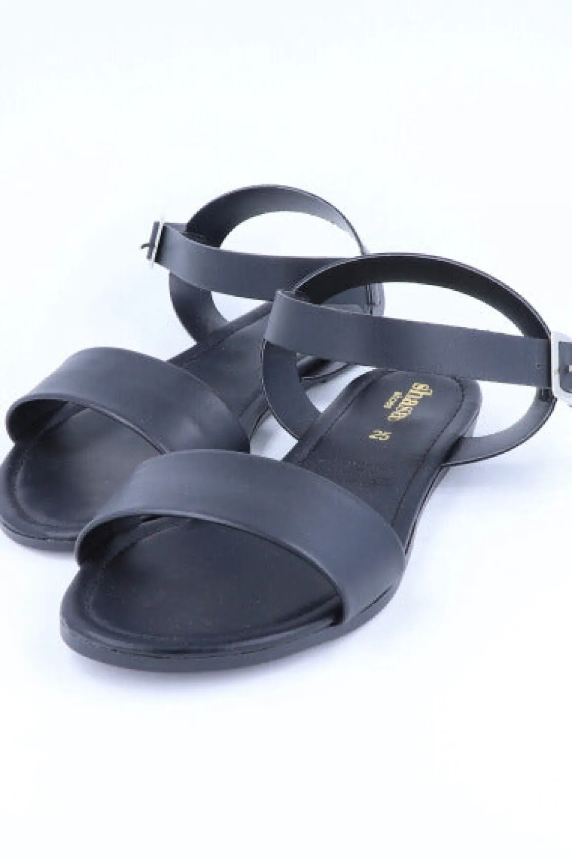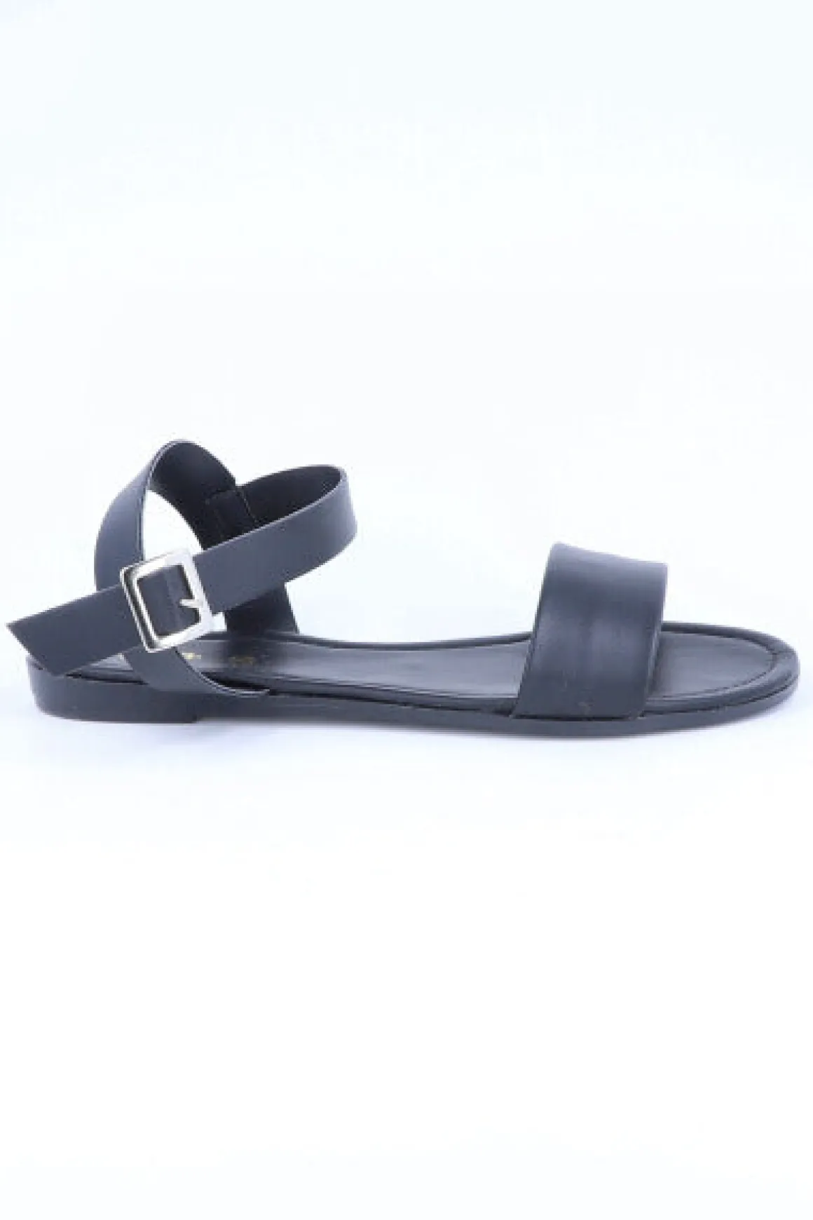 Sandalia lisa de efecto piel con tira frontal. Pulsera con hebilla en tobillo.