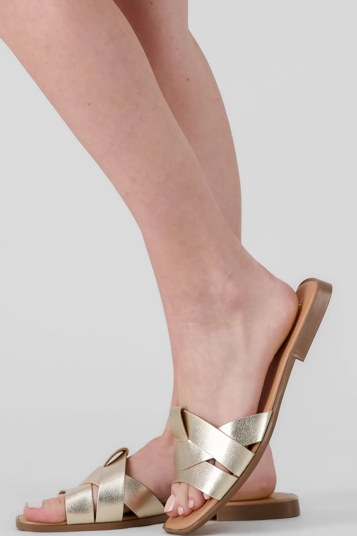 Estas sandalias con tiras cruzadas y un toque de efecto piel combinan perfectamente con un look chic pero casual. Ideales para elevar cualquier conjunto veraniego con un toque moderno.