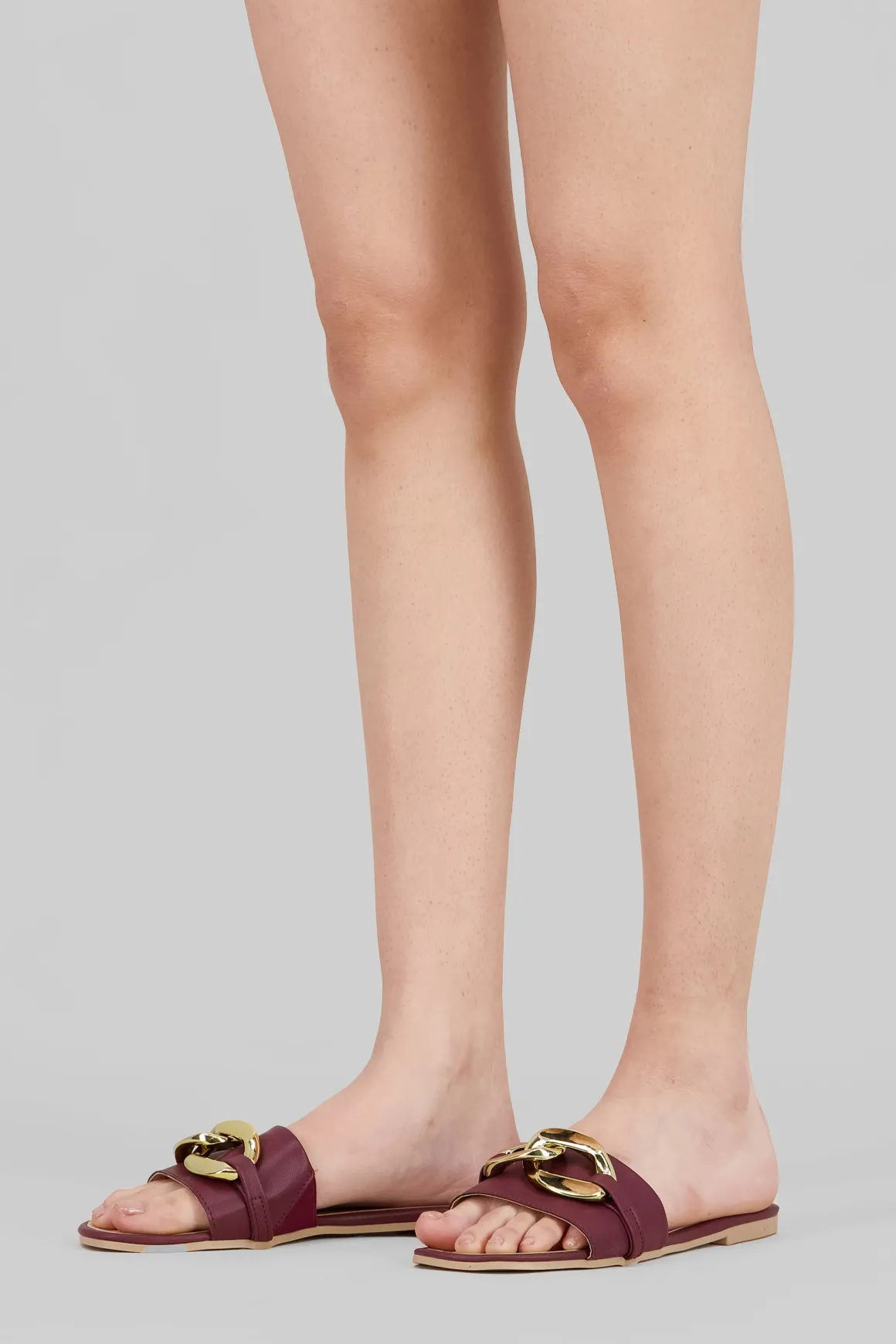 Estas sandalias tipo mula son perfectas para complementar cualquier look casual con su diseño moderno de eslabones.
