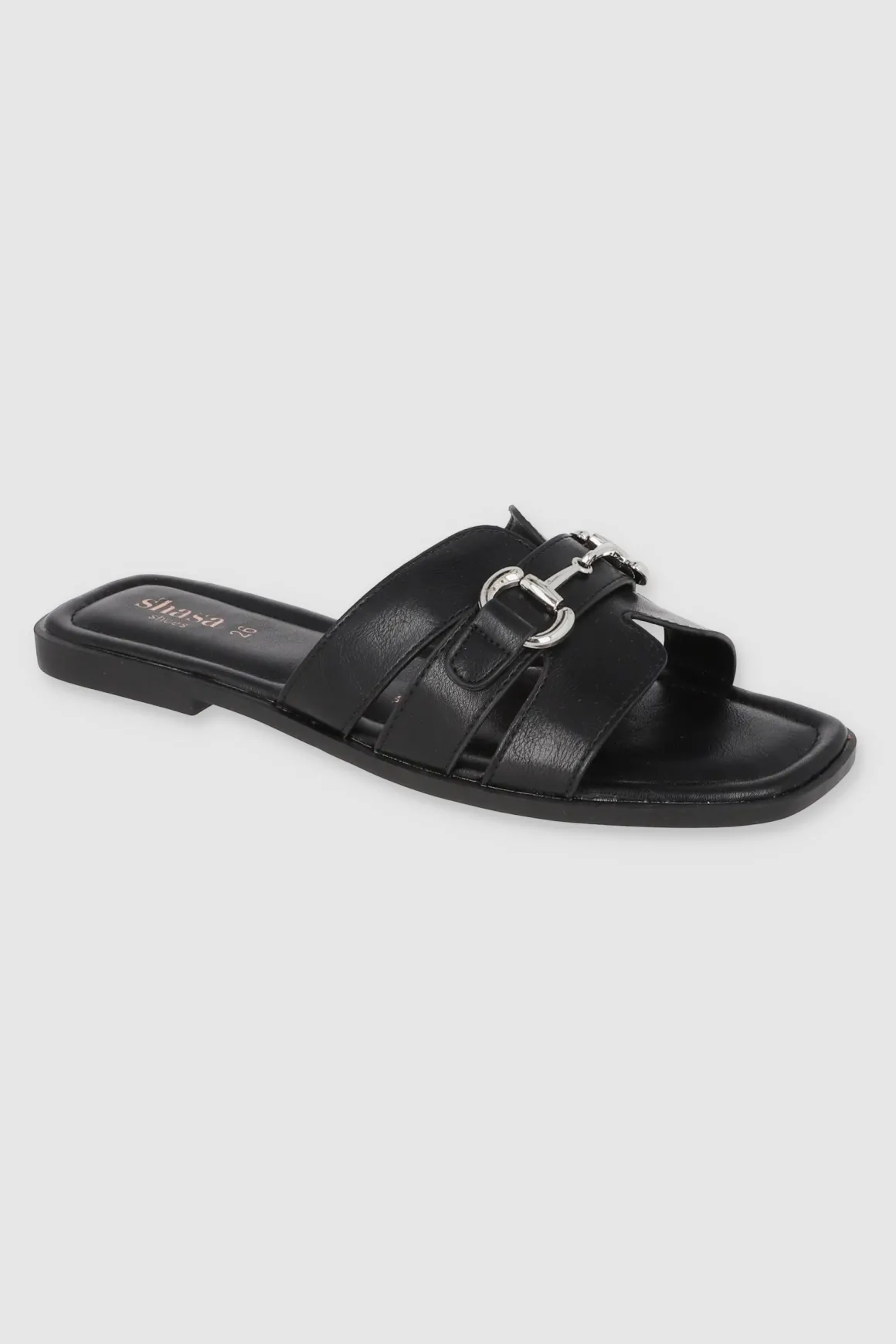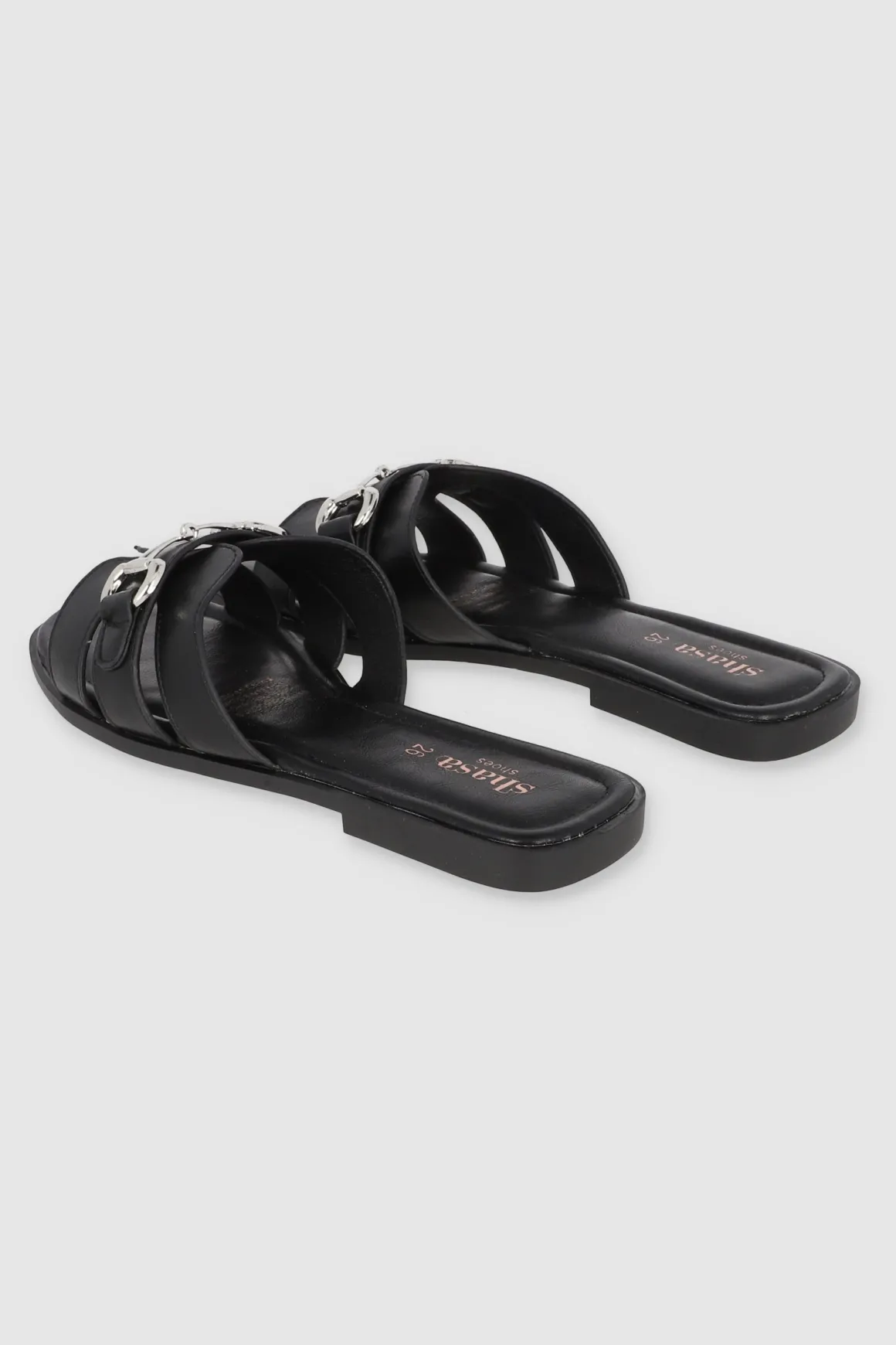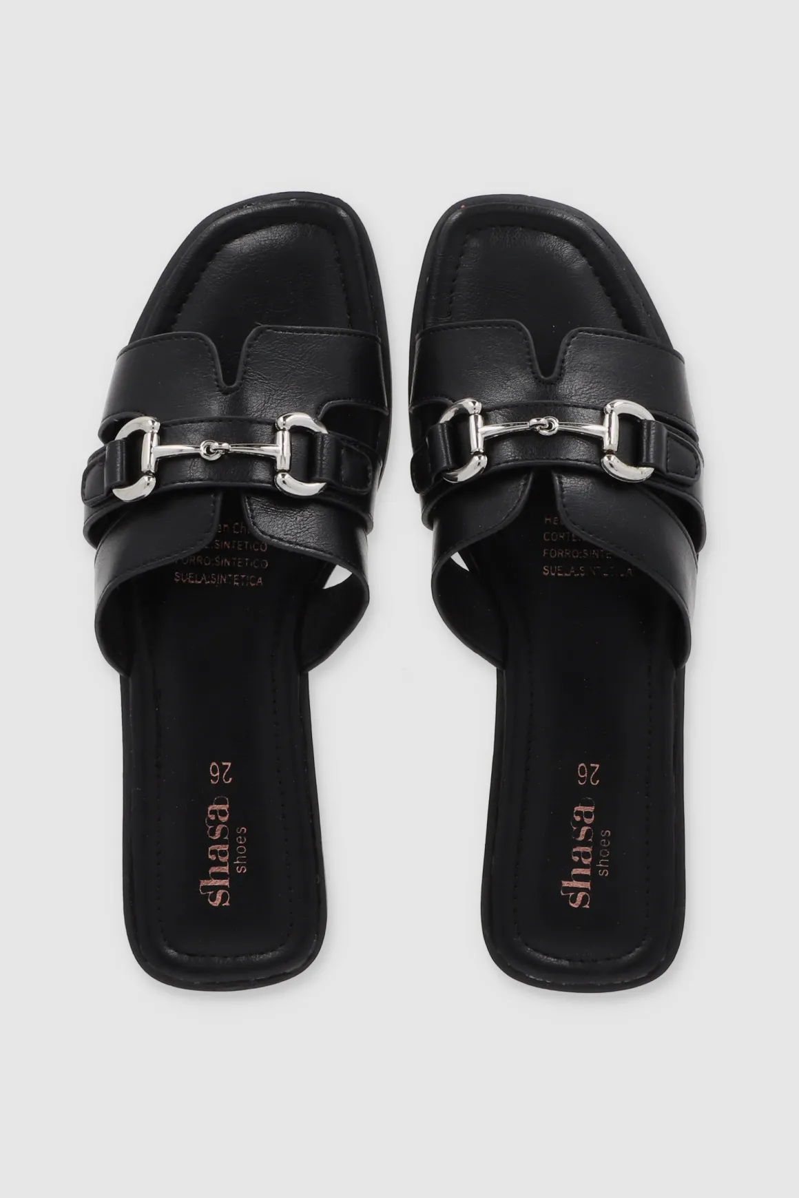 - Diseño mule con hebilla que aporta un toque distintivo.