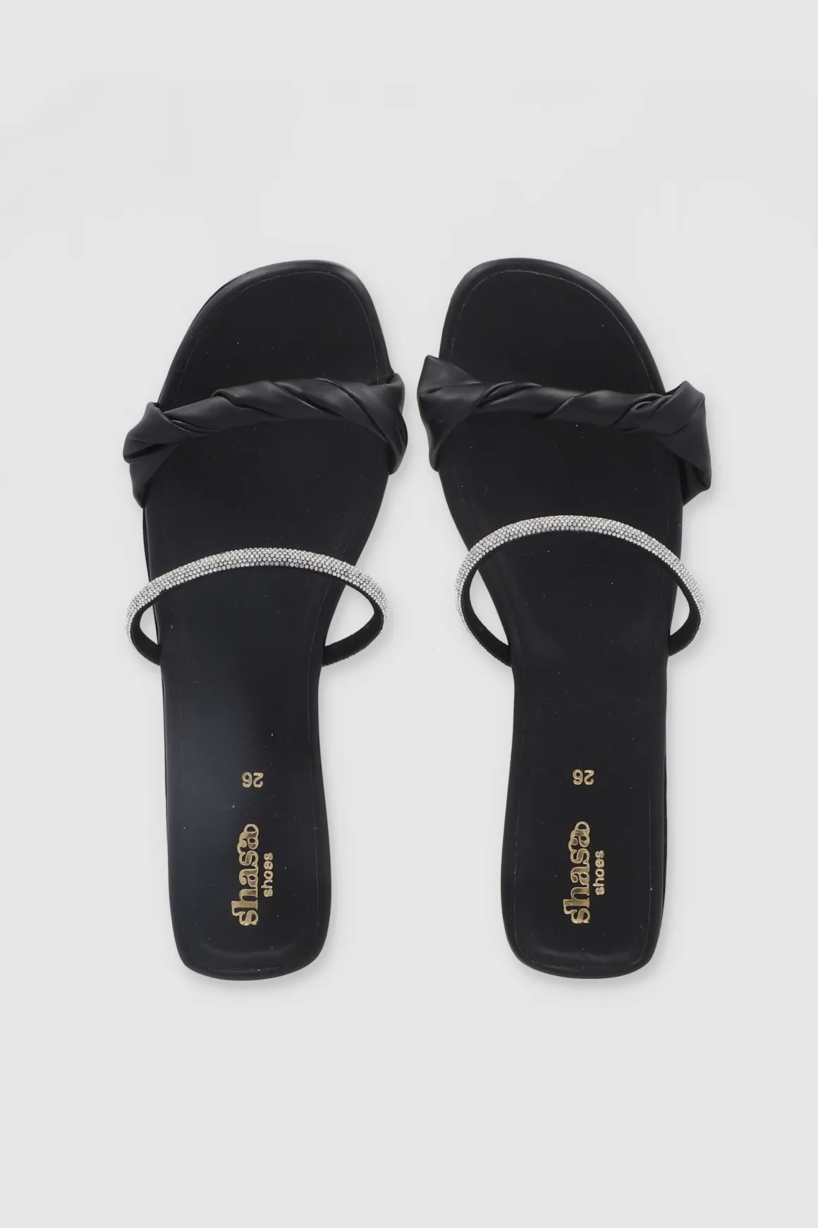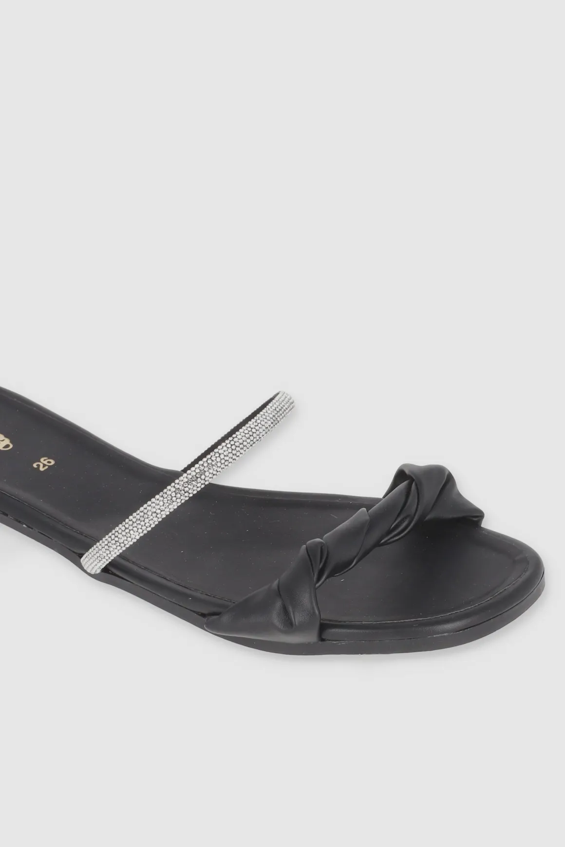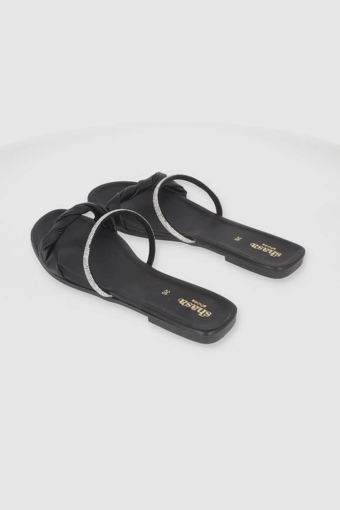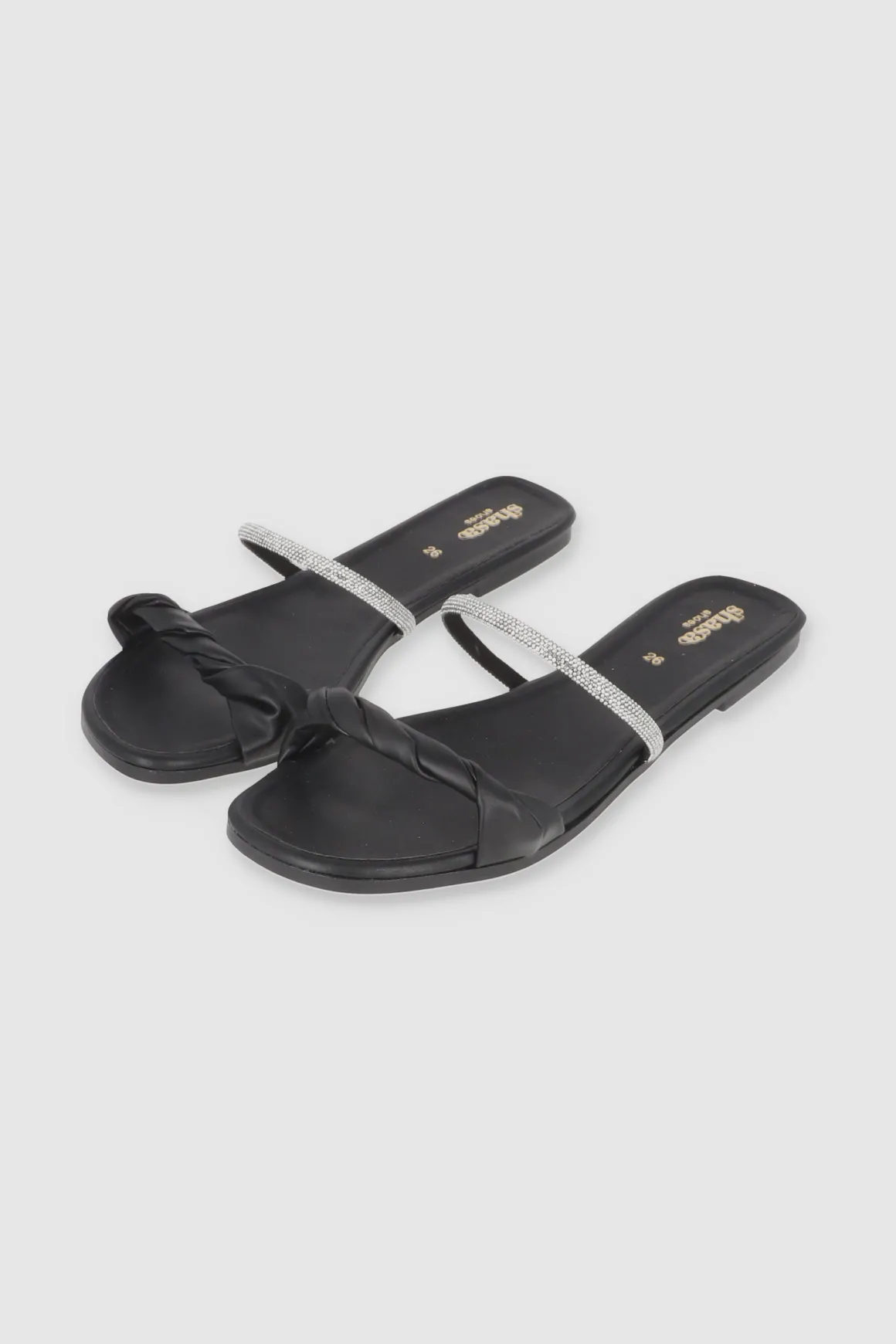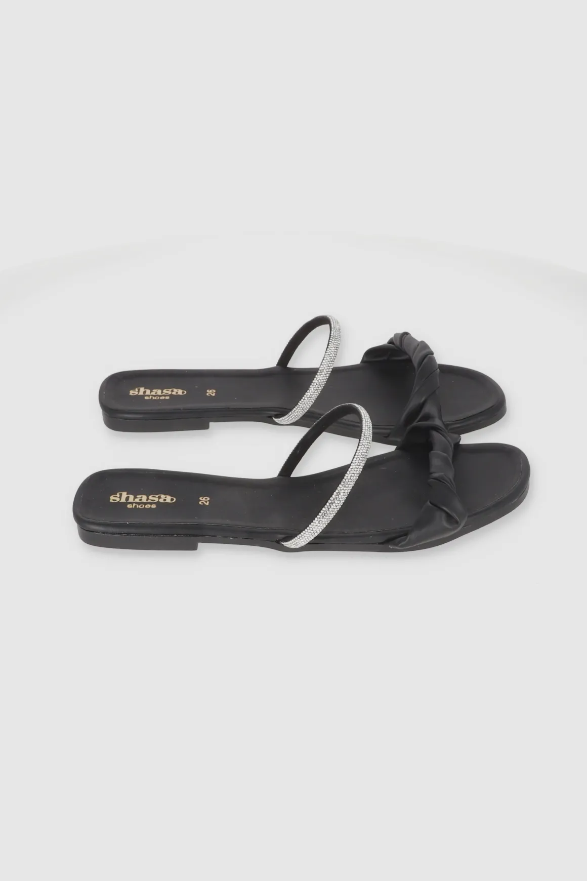 Estas sandalias planas son todo lo que necesitas para darle un toque moderno a tu outfit. Con una cinta superior con detalle de nudo y una tira delgada con aplicación de brillos, son ideales para cualquier ocasión. Perfectas para combinar con tus jeans favoritos o un vestido veraniego, estas sandalias son la opción perfecta para mantener tu look fresco y a la moda.