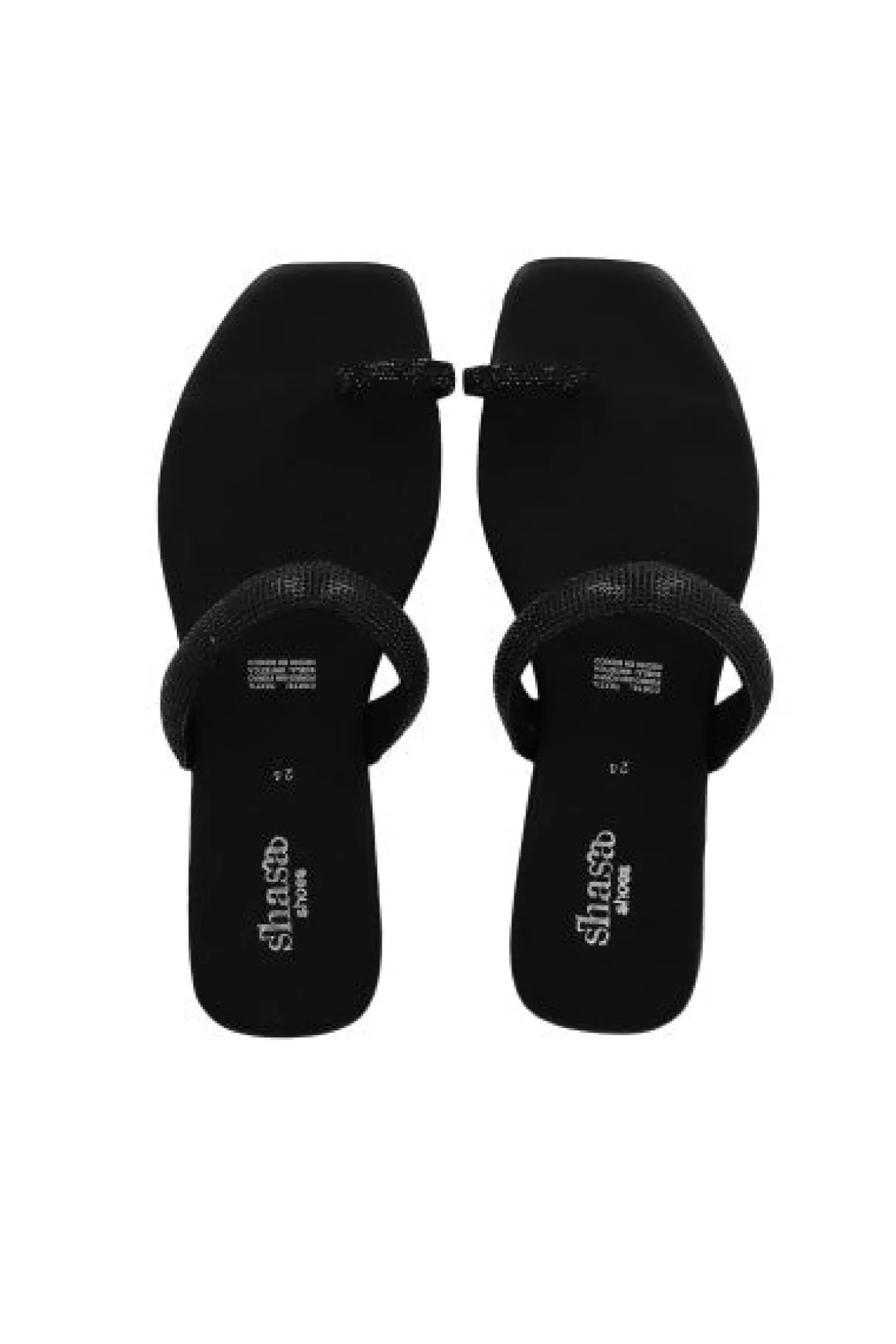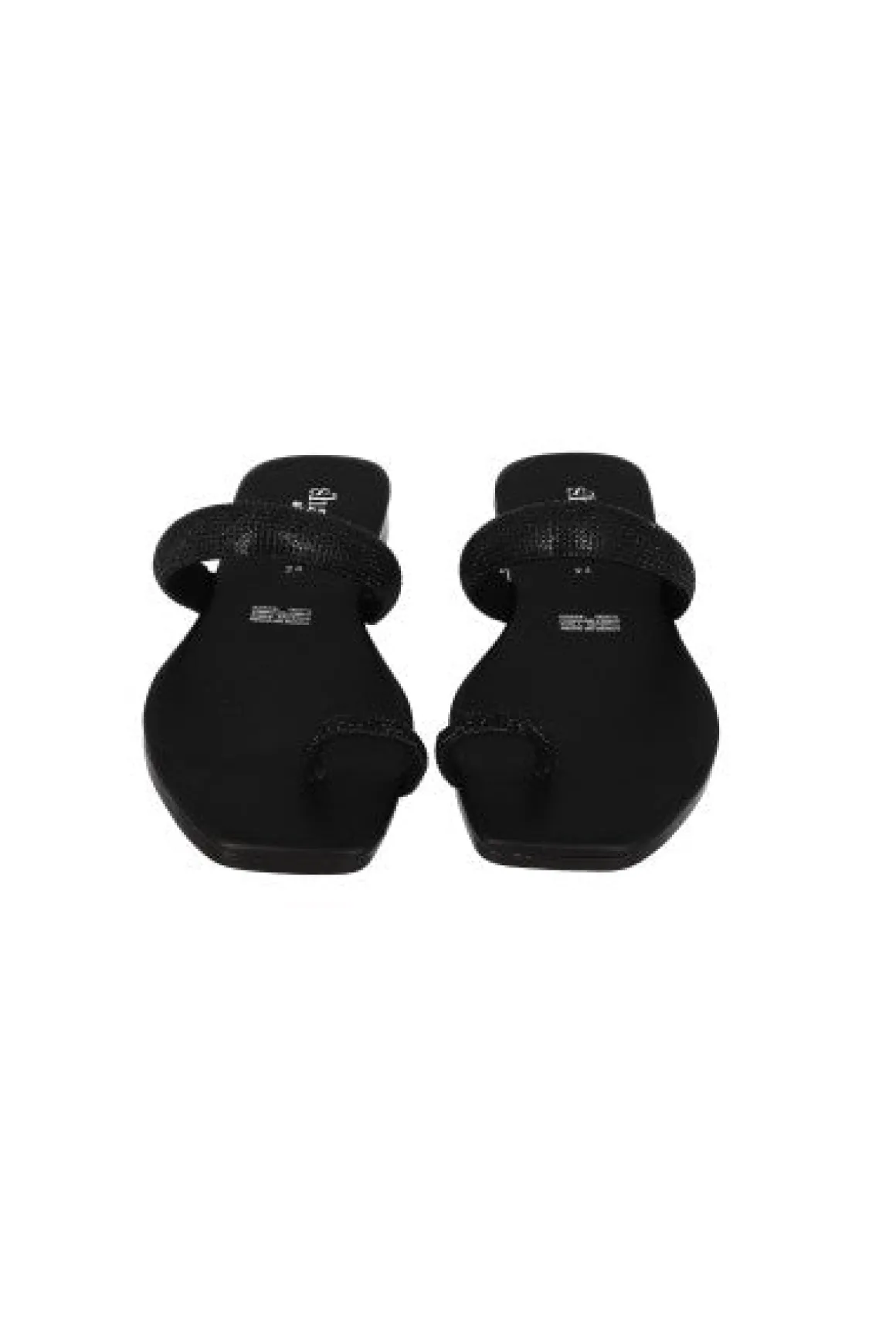 Sandalias pala con punta cuadrada. Tira frontal y anillo para dedo con aplicación de brillos.
