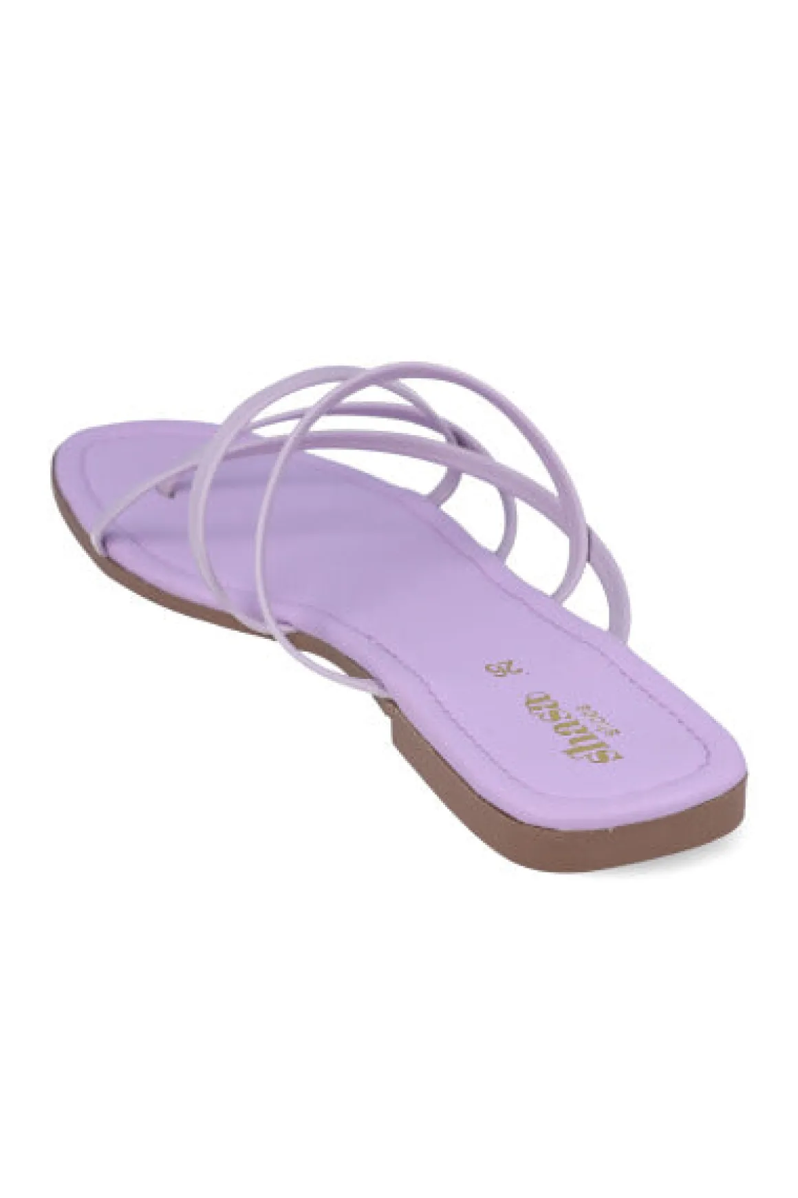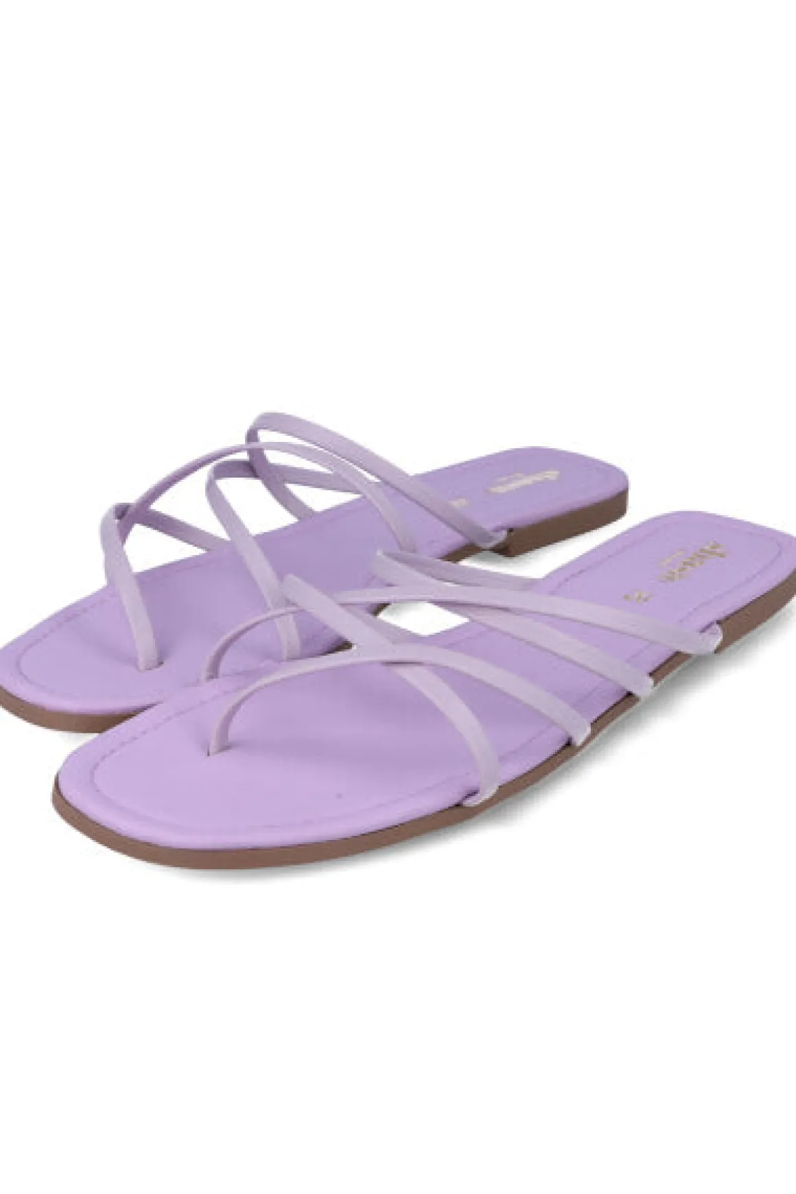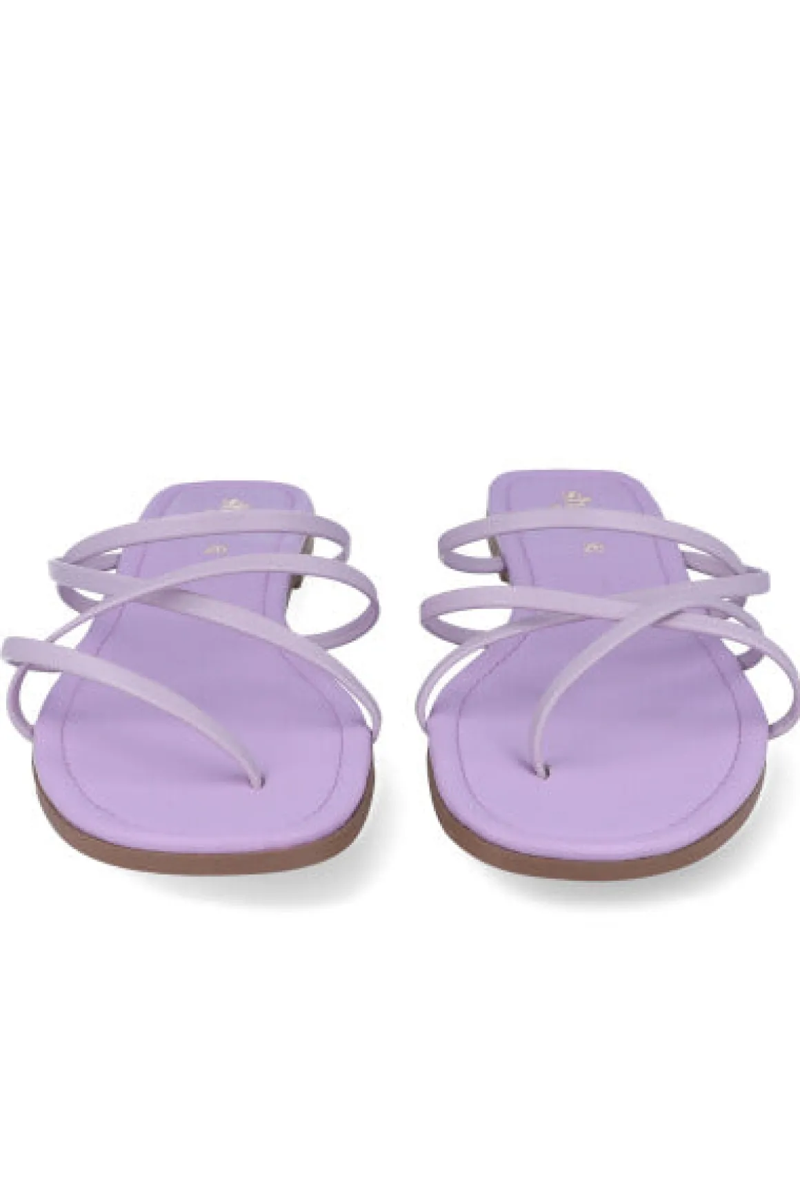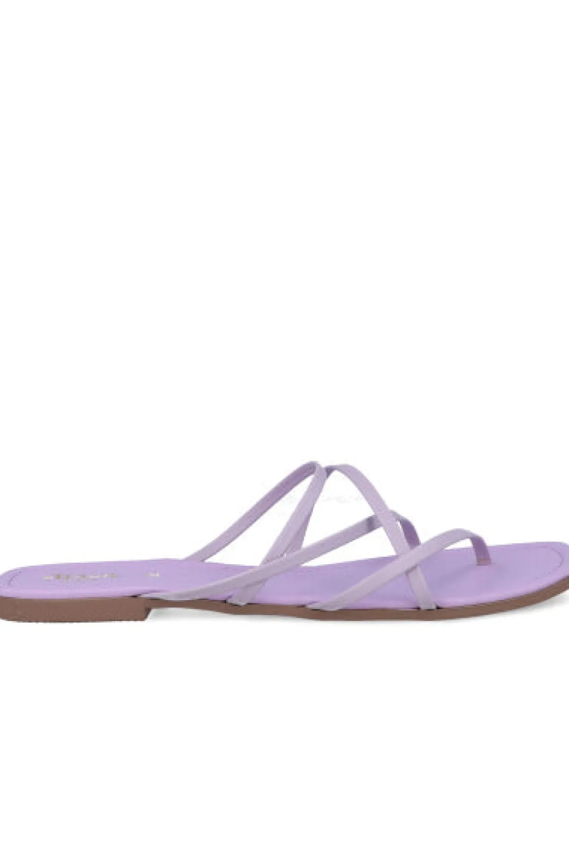 Sandalia plana con tiras delgadas cruzadas en empiene. Suela antiderrapante.