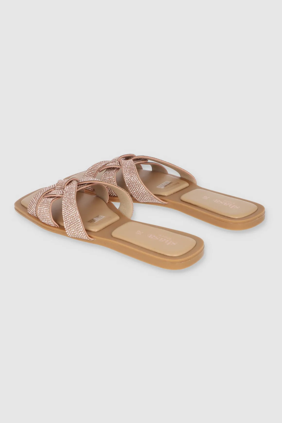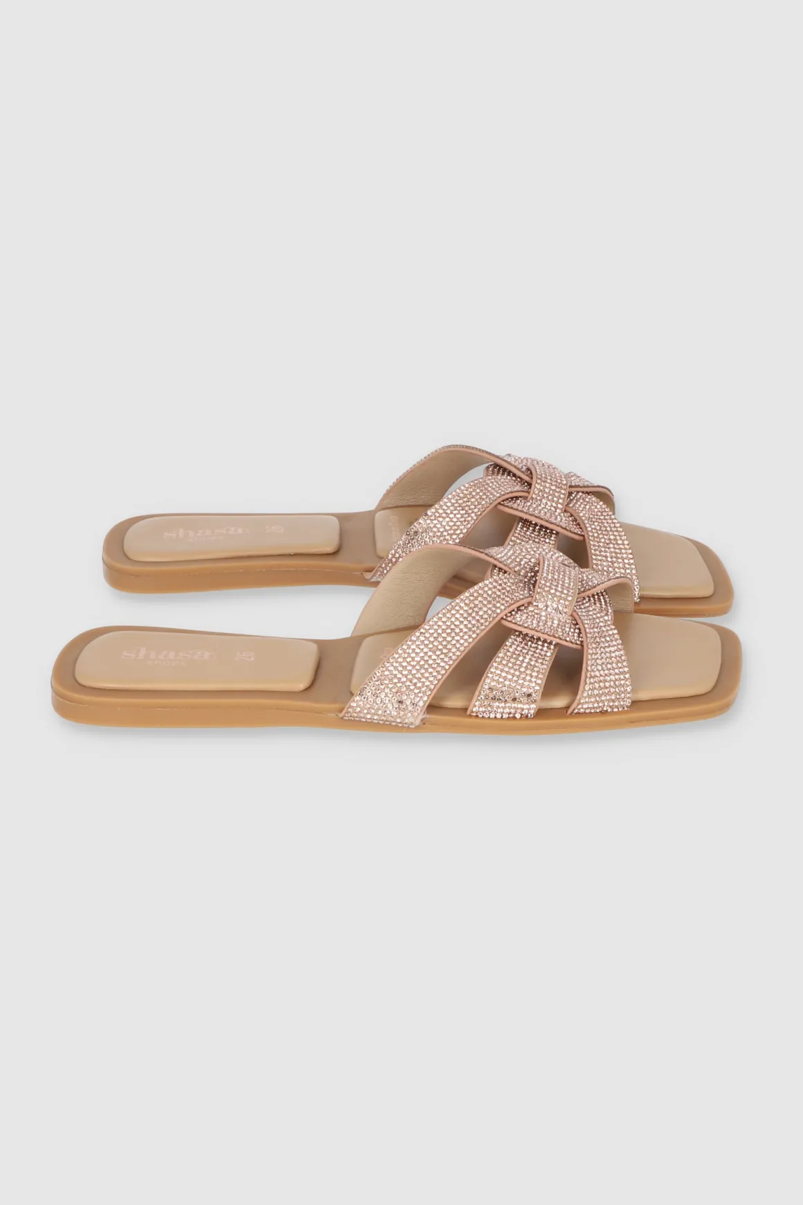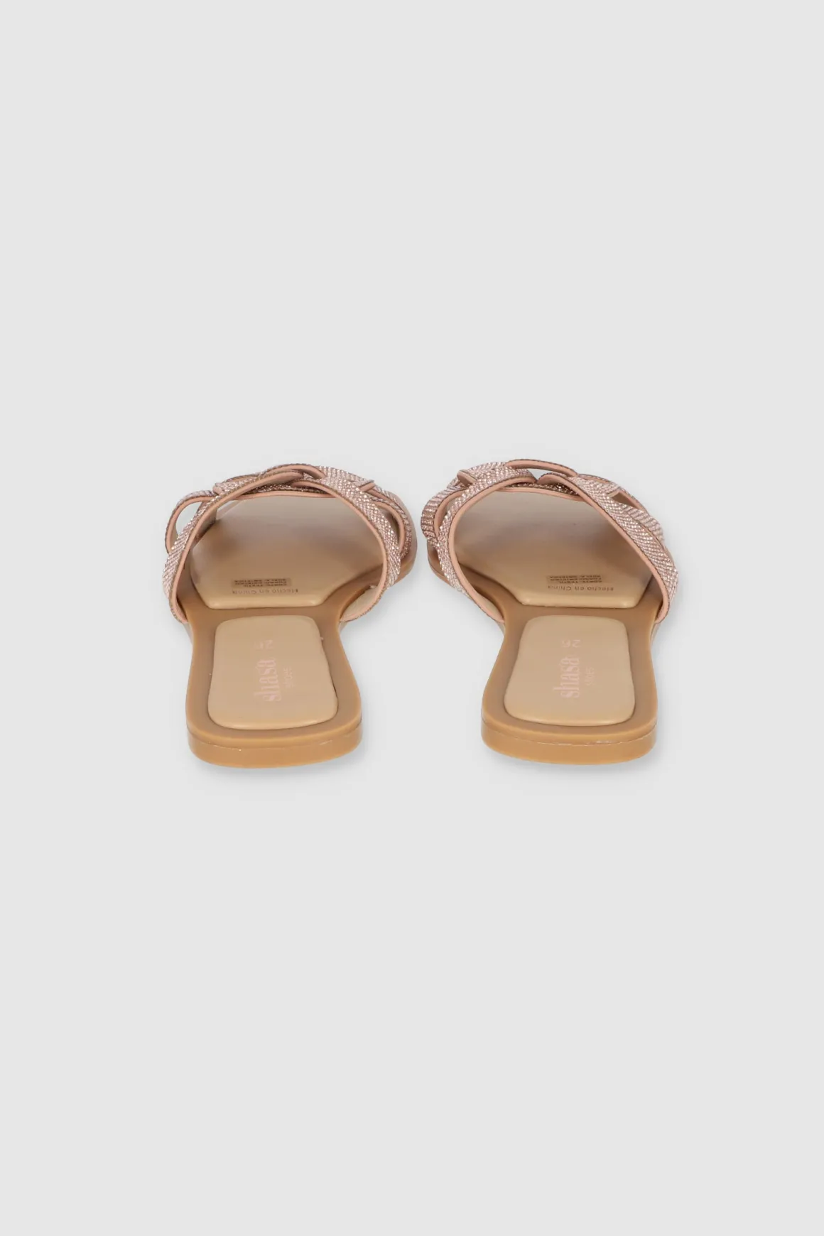 ¿Buscas unas sandalias cómodas y a la moda para esta temporada? ¡No busques más! Nuestras sandalias planas entrelazadas con brillos son la elección perfecta para ti.