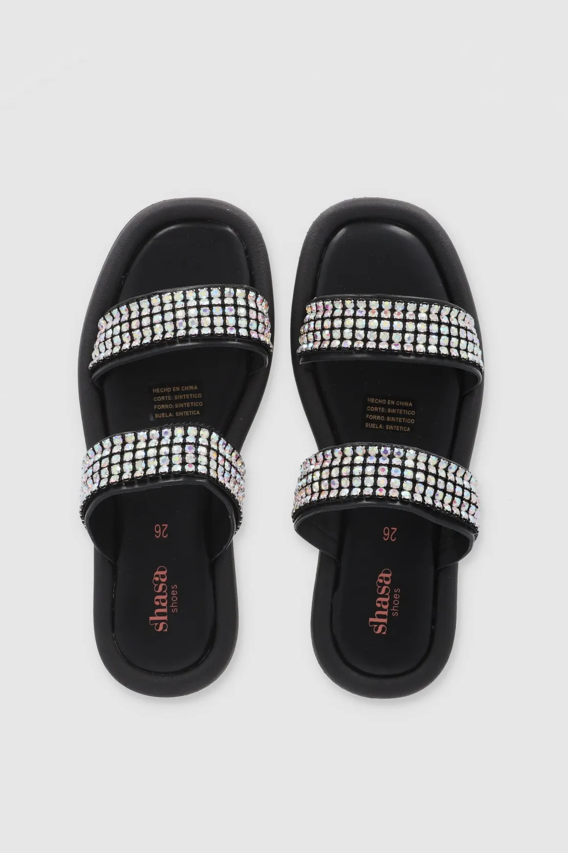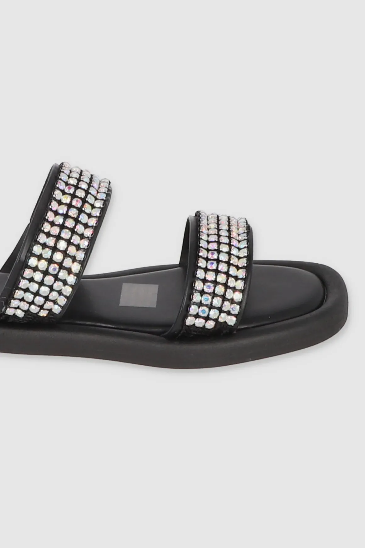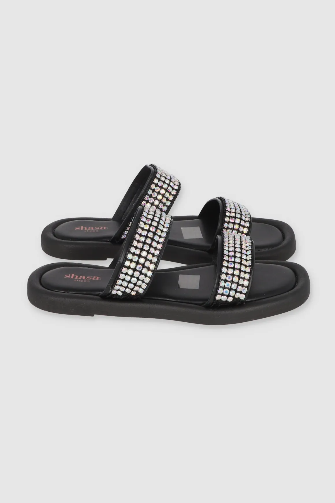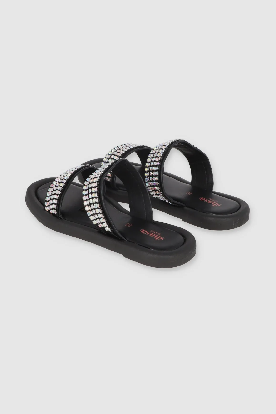 Descubre la comodidad y el estilo con nuestras sandalias de suela ancha con dos tiras decoradas con aplicaciones de brillos. Estas sandalias son la combinación perfecta entre comodidad y practicidad, ideales para lucir tanto de día como de noche.