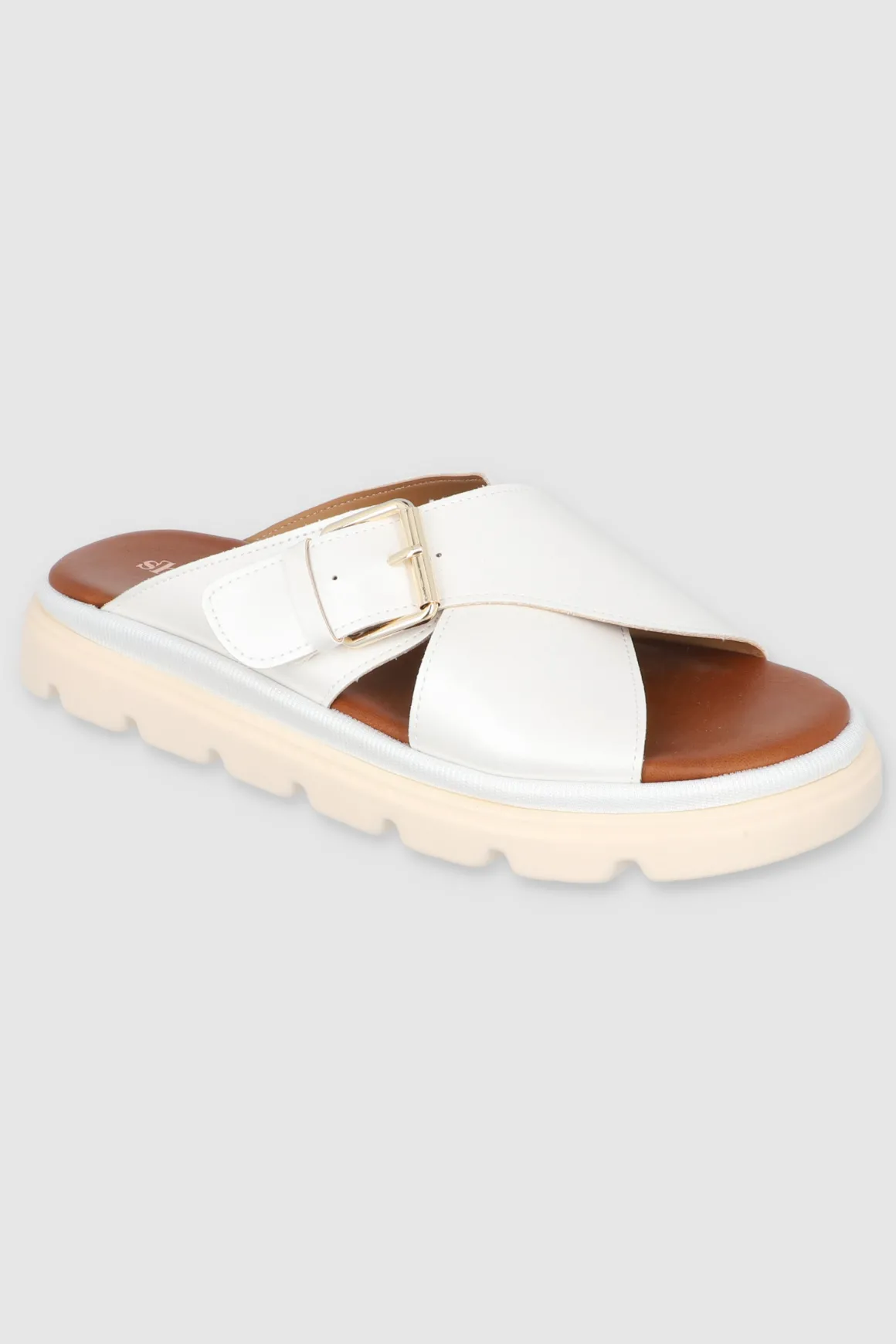 Sandalia suela dentada tiras cruzadas hebilla