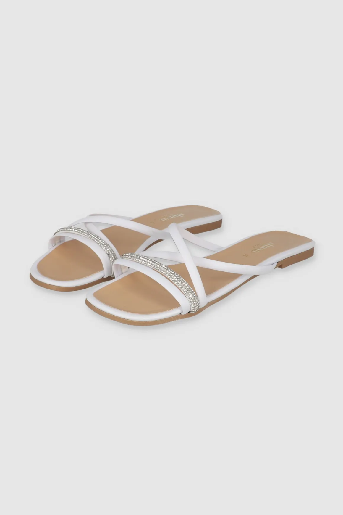 ¡Eleva tu estilo con nuestras sandalias planas de cintas cruzadas! Perfectas para un look fresco y moderno, estas sandalias son ideales para cualquier ocasión, desde un paseo casual hasta una salida nocturna con amigas. Las cintas delgadas superiores, decoradas con brillantes, añaden un toque de glamour que no pasará desapercibido.