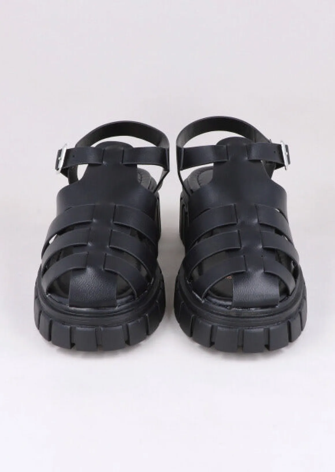 Sandalias monocolor cangrejera con plataforma chunky.
