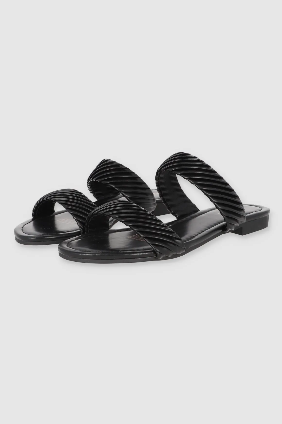 Eleva tu estilo con nuestras sandalias planas, perfectas para cualquier plan. Estas sandalias cuentan con una doble tira superior con una textura de líneas diagonales que le da un toque único y moderno a tu look. Ideales para combinar con jeans, faldas o vestidos, son las aliadas perfectas para tus días más casuales y relajados.