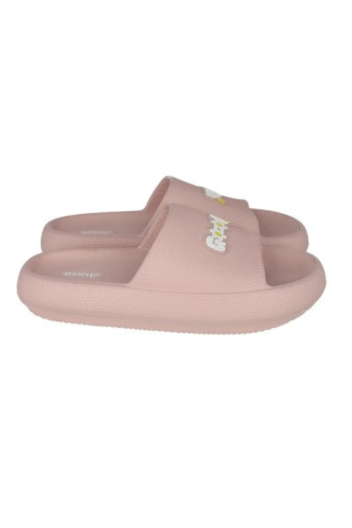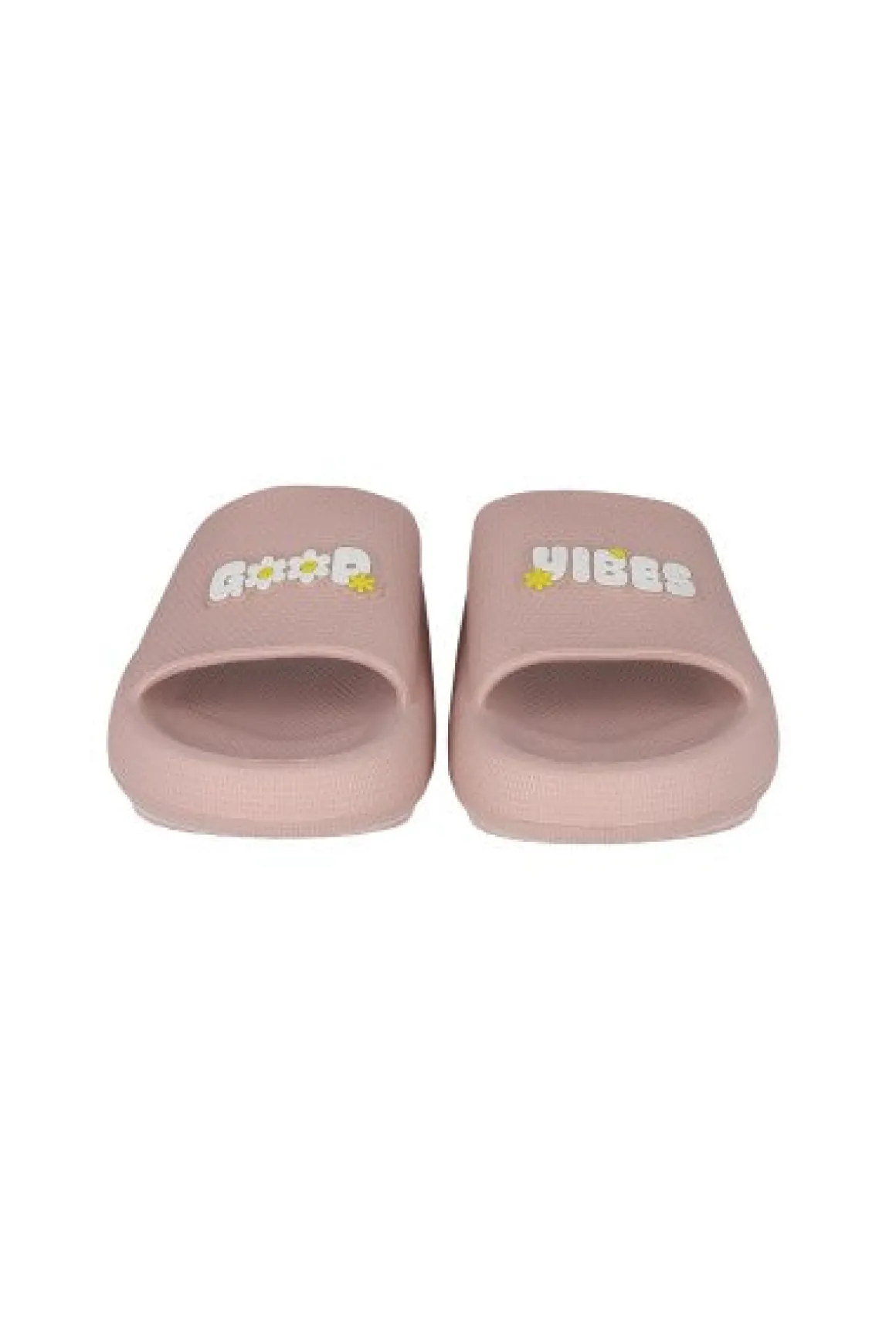 Sandalias slide eva con diseño de frase good vibes.