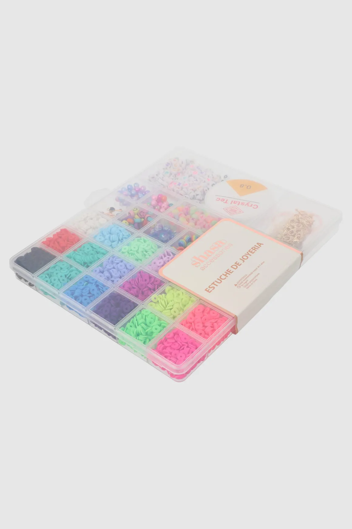 Set de joyería con cuentas multicolor que te permitirán diseñar collares, pulseras y aretes únicos. El estuche transparente te ayuda a mantener todas tus cuentas organizadas y a la vista, para que puedas dejar volar tu creatividad. ¡Crea tus propias joyas con este increíble kit de bisutería!