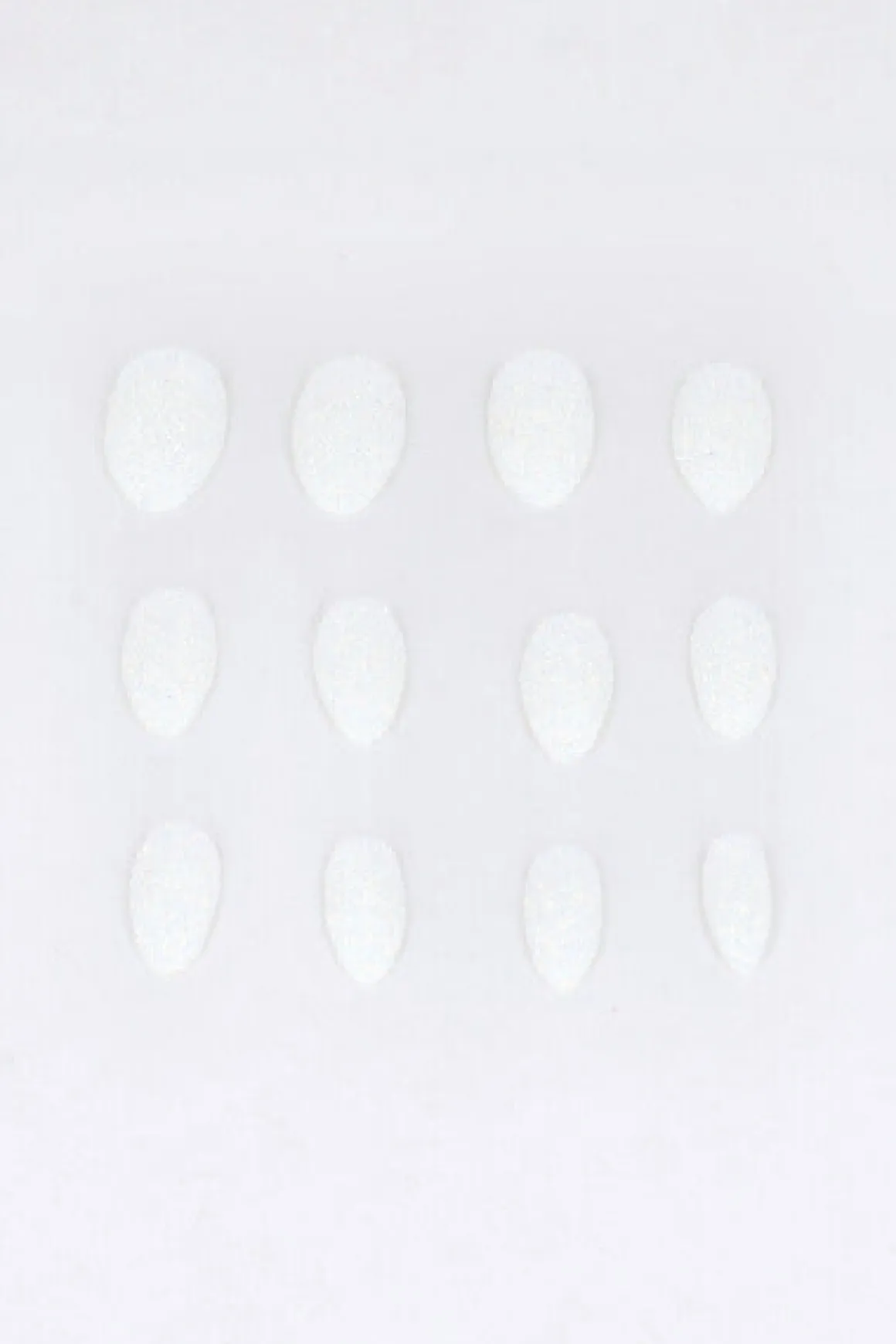 Set 12 piezas de uñas postizas autoadhesivas. Punta almendrada con brillo.