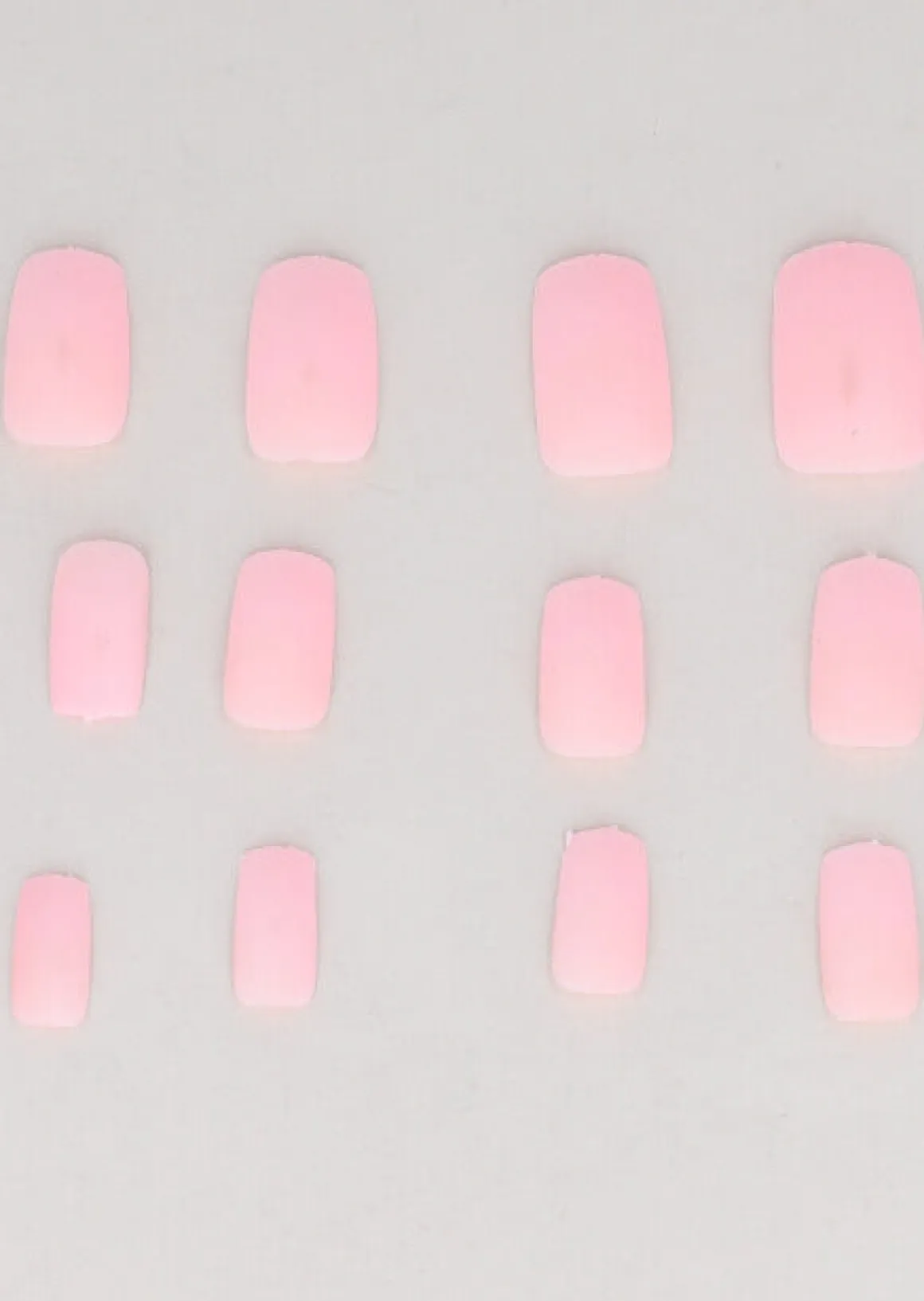 Set 24 piezas de uñas pastel postizas autoadhesivas. Punta cuadrada con efecto mate.