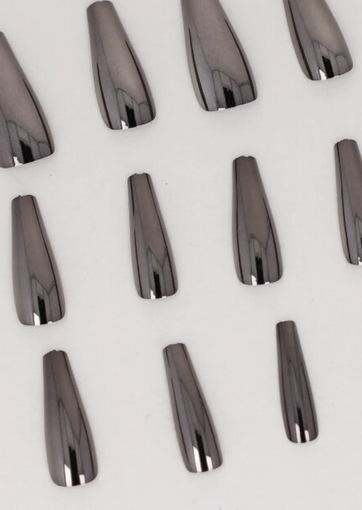 Set de 12 uñas postizas autoadhesivas ballerina con efecto metálico.