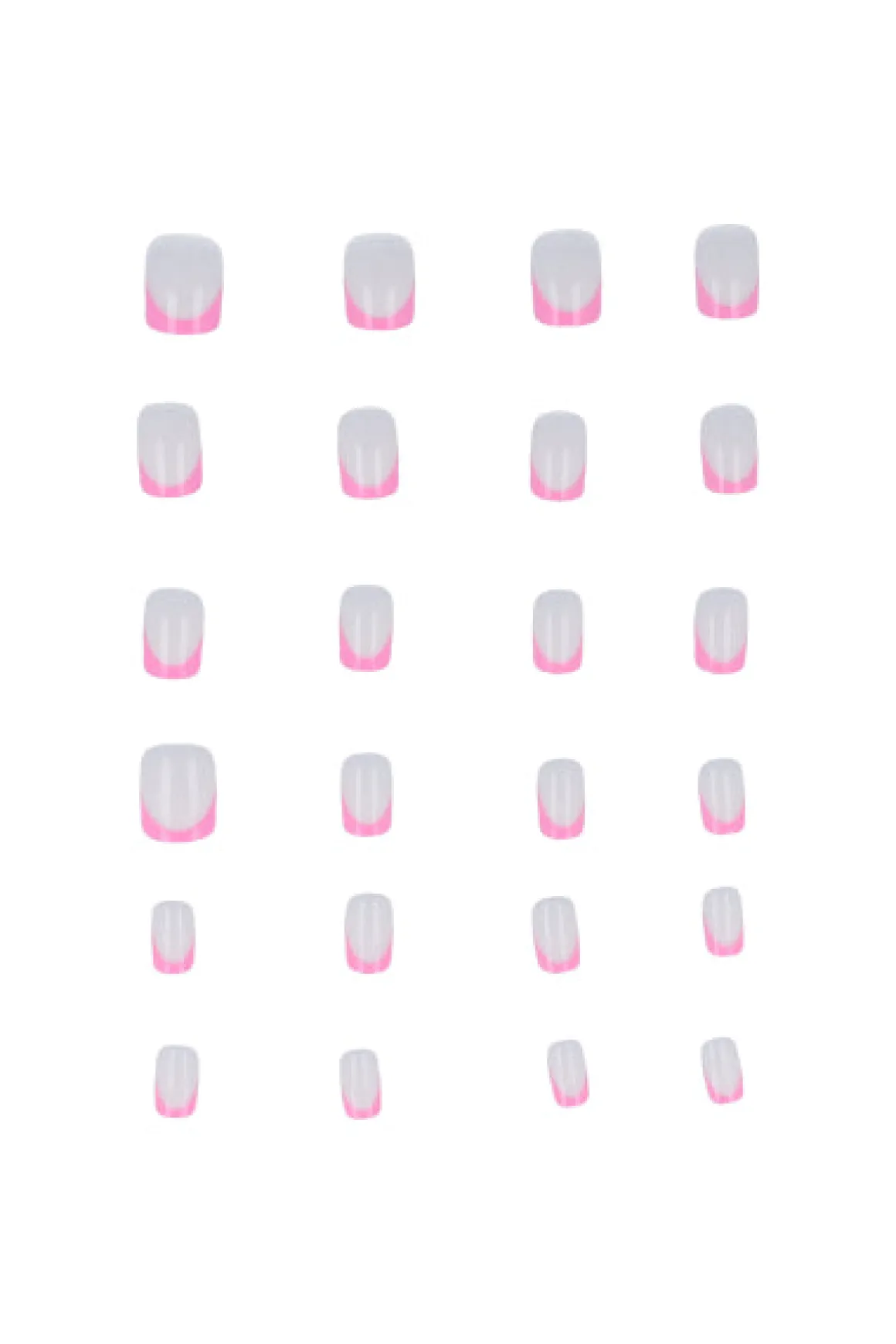 Set de 24 uñas postizas con punta redonda y diseño de francés iridiscente.
