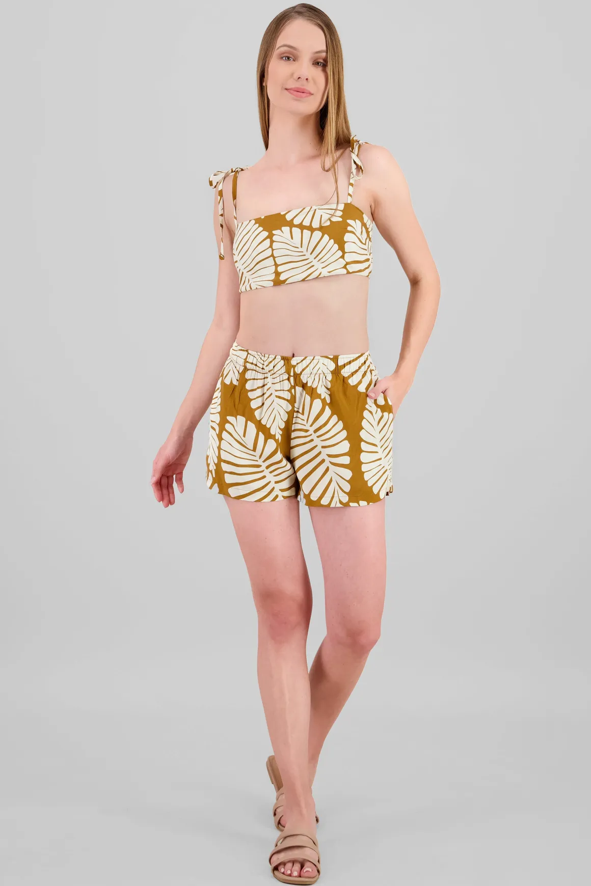 Este short con estampado tropical es la elección perfecta para quienes buscan un look vibrante y lleno de vida. Su diseño destaca por sus patrones tropicales, ideales para esos días soleados.