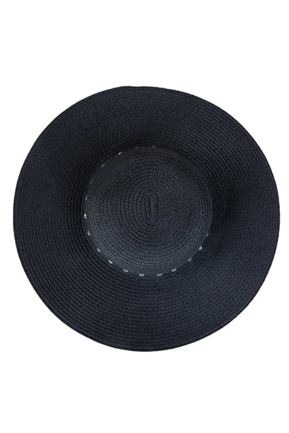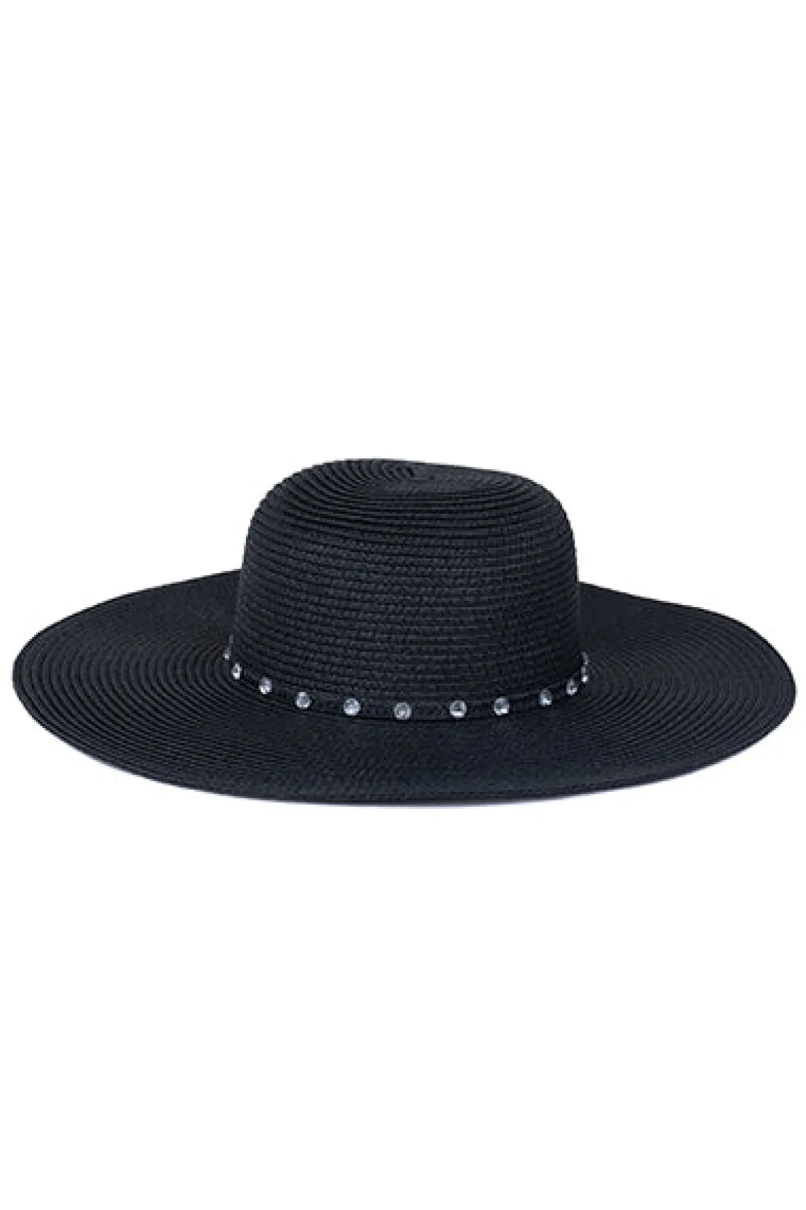 Sombrero de diseño entretejido con ala ancha y cinta de brillos.
