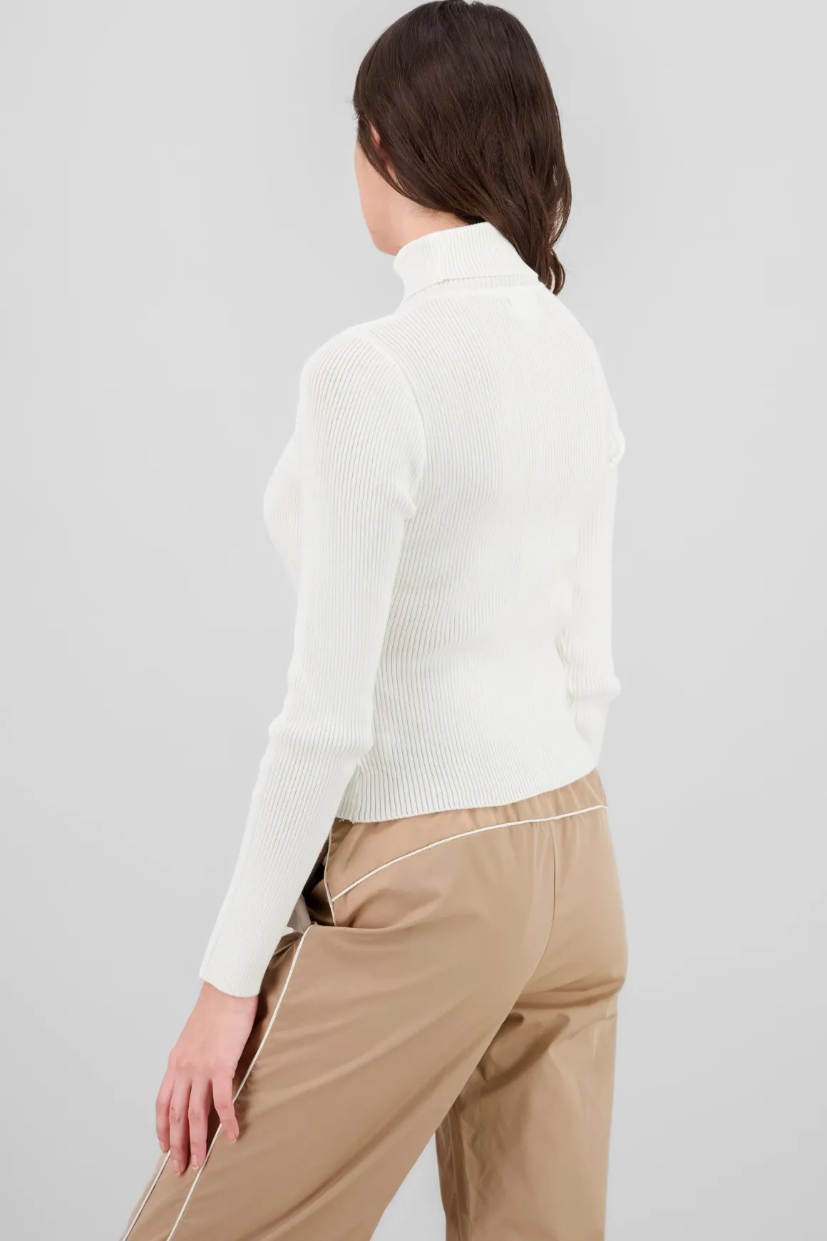 - Cuello alto que aporta calidez y estilo.