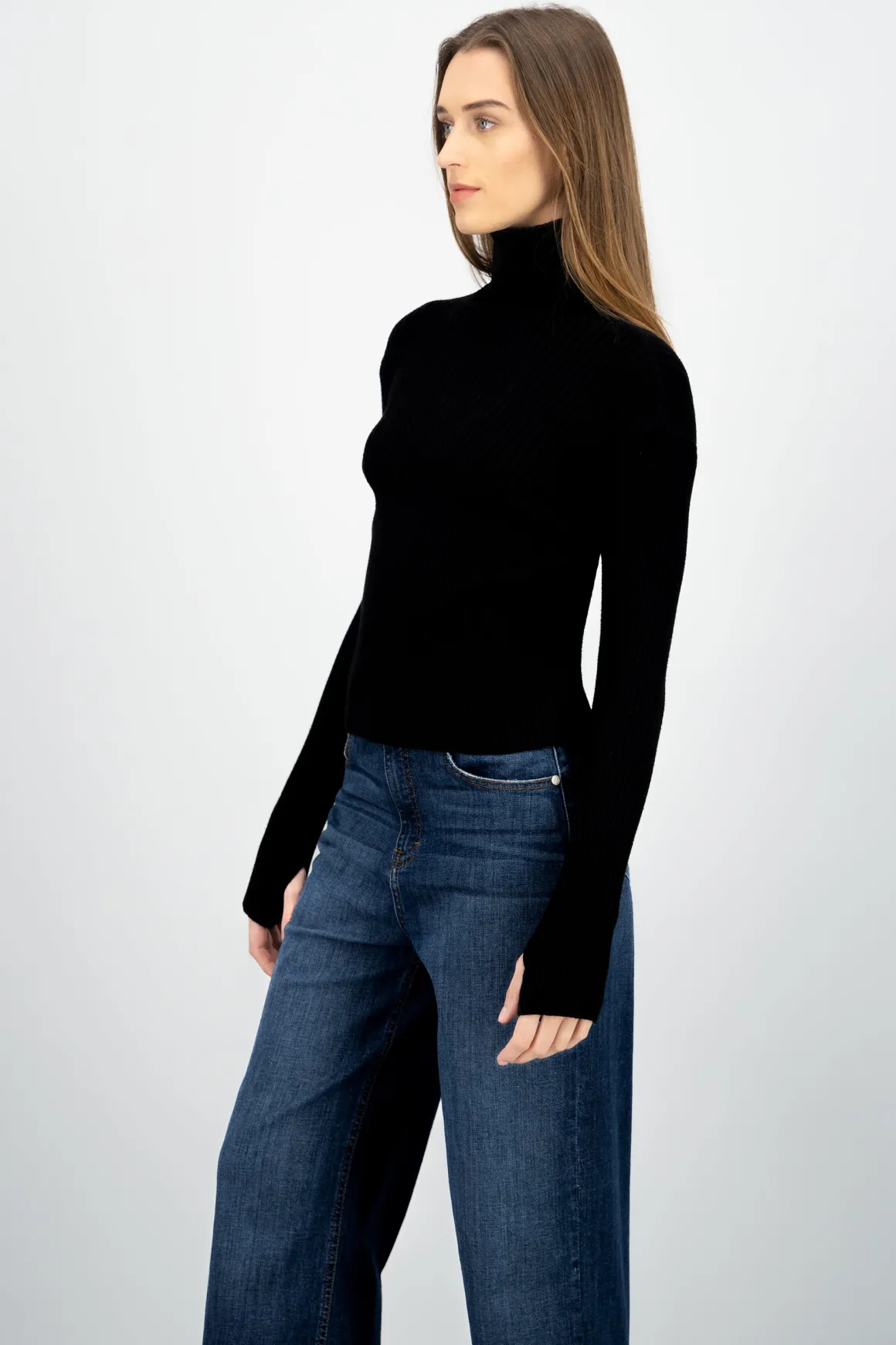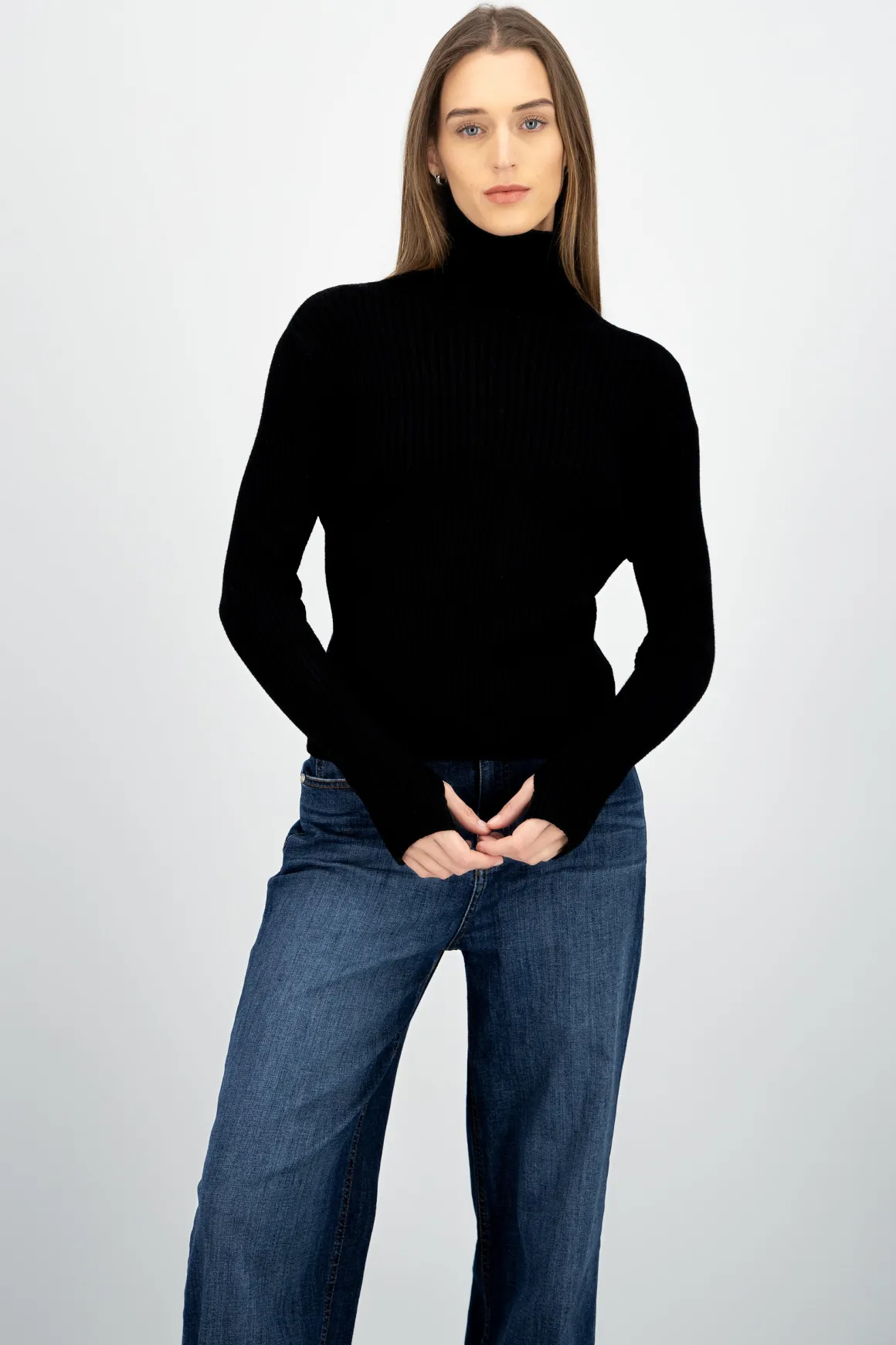 Descubre la esencia del estilo con este suéter de cuello alto y aberturas en los pulgares, perfecto para esos días en los que quieres sentirte cómoda y chic. Su diseño innovador ofrece un toque único que alegrará cualquier outfit.