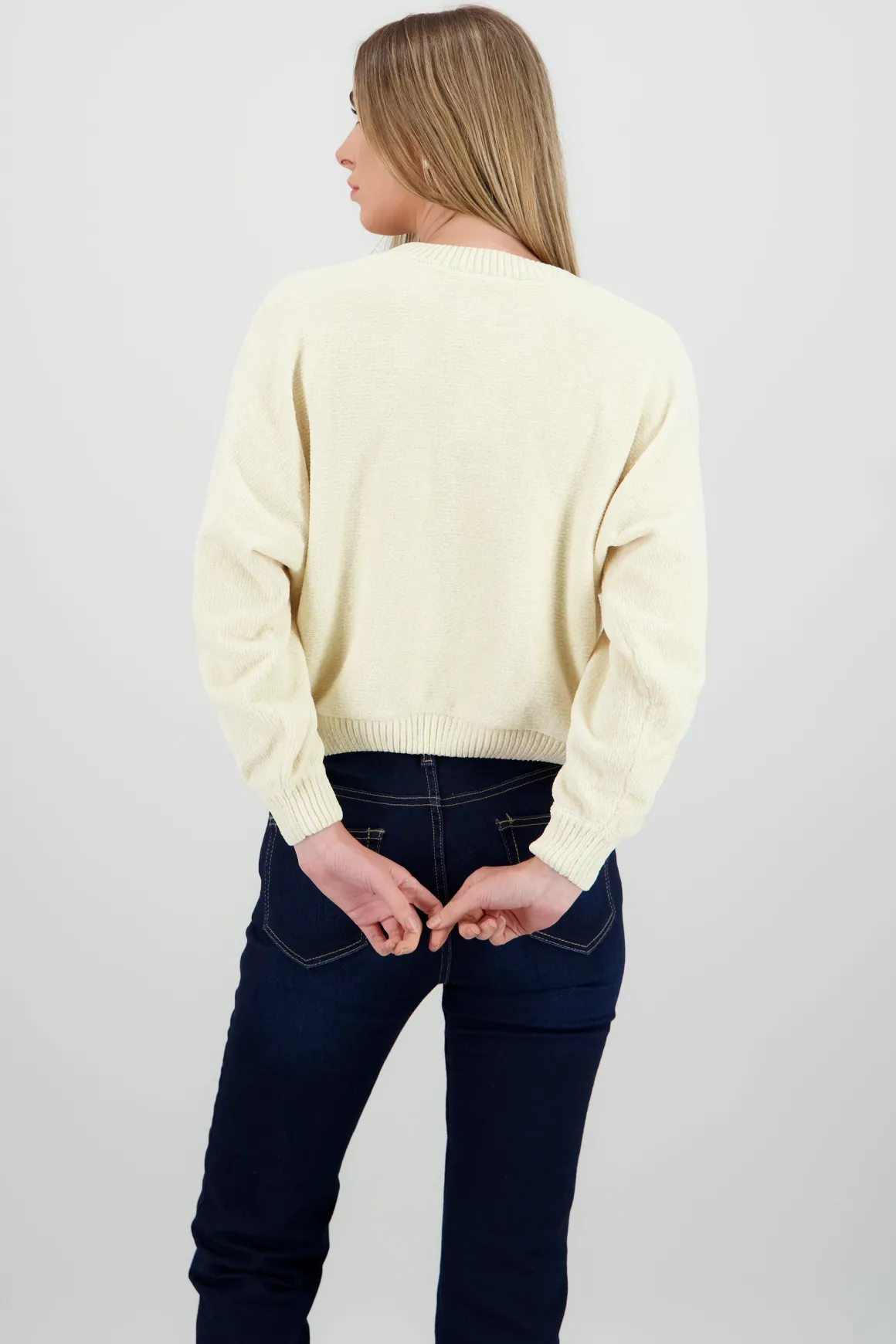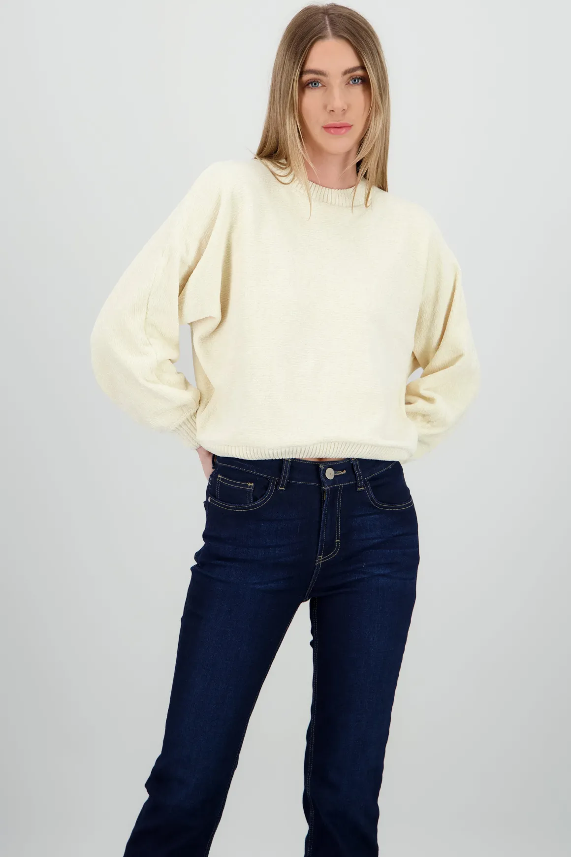 Este suéter es todo lo que necesitas para un look cómodo y con estilo. Perfecto para cualquier día, su diseño liso y sencillo lo convierte en una prenda fácil de combinar y siempre acertada.