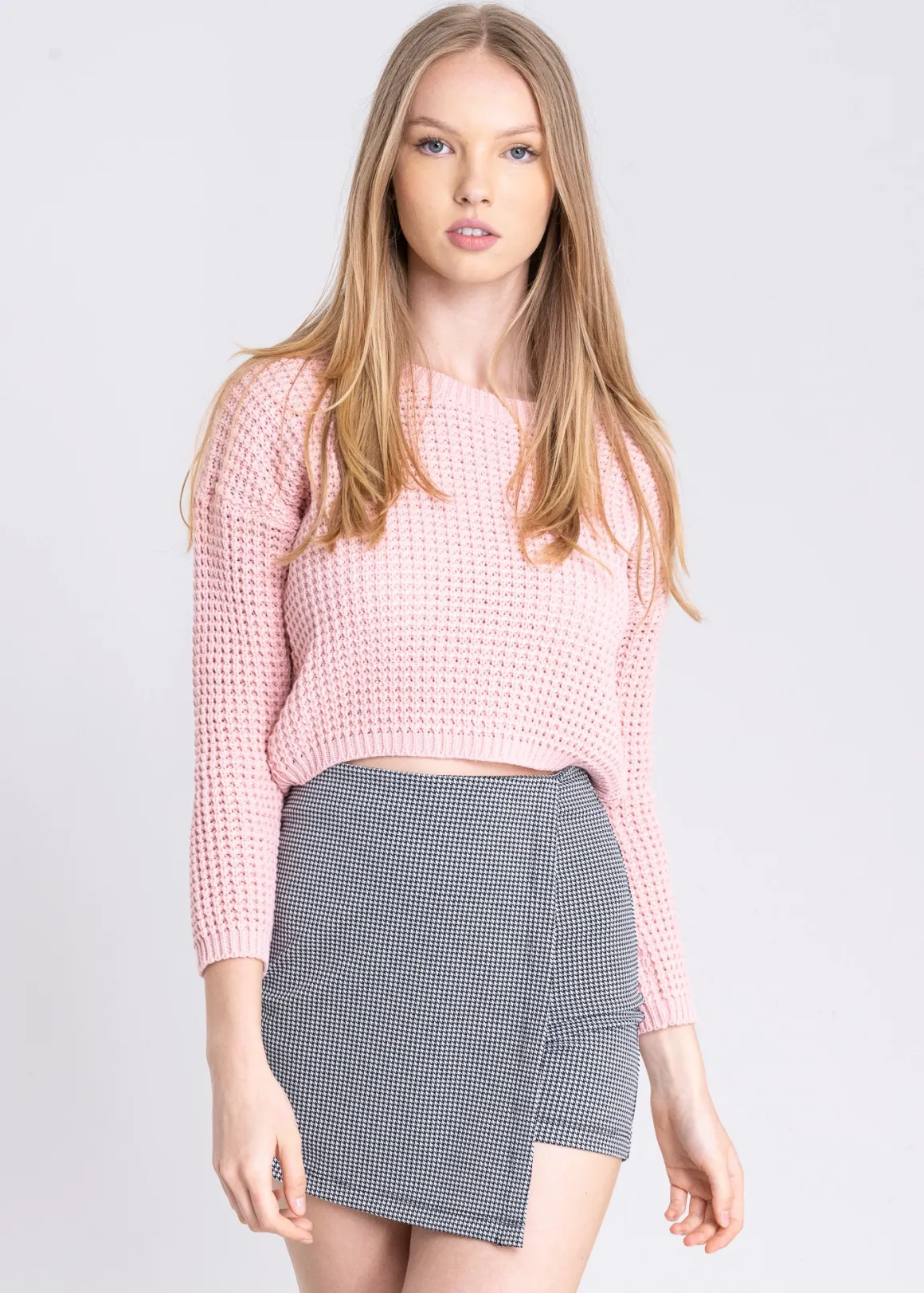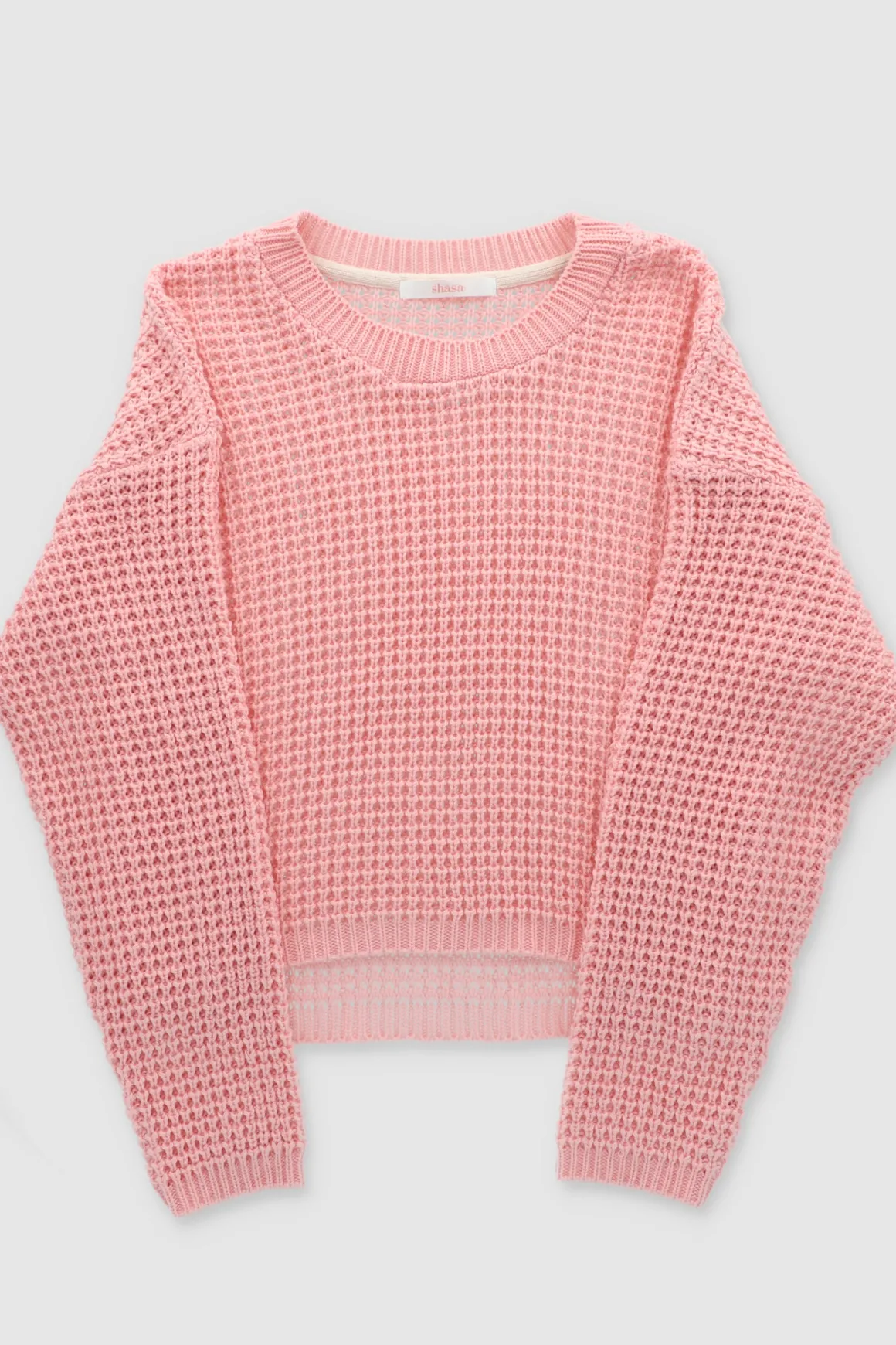 Dale un toque moderno a tu look con este suéter tejido cropped. Diseñado con un cuello redondo y hombros caídos, este suéter es perfecto para un estilo casual y contemporáneo.
