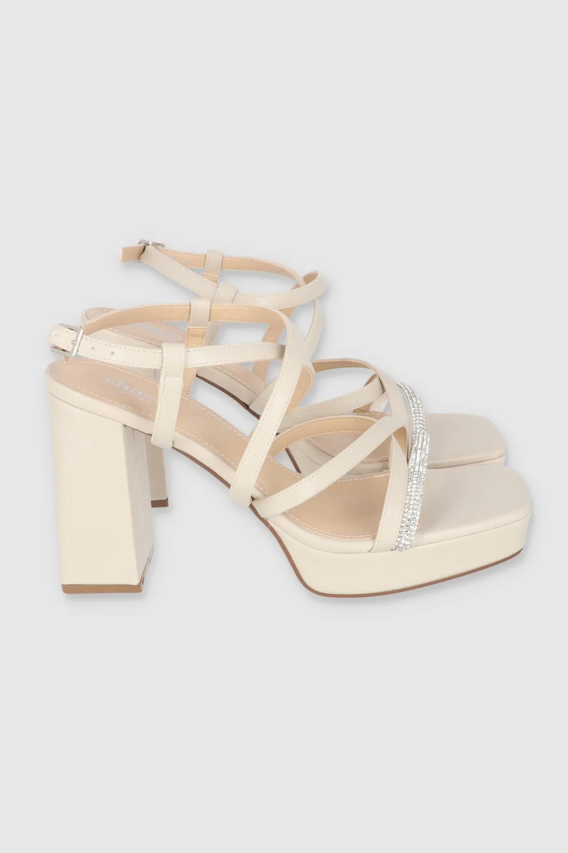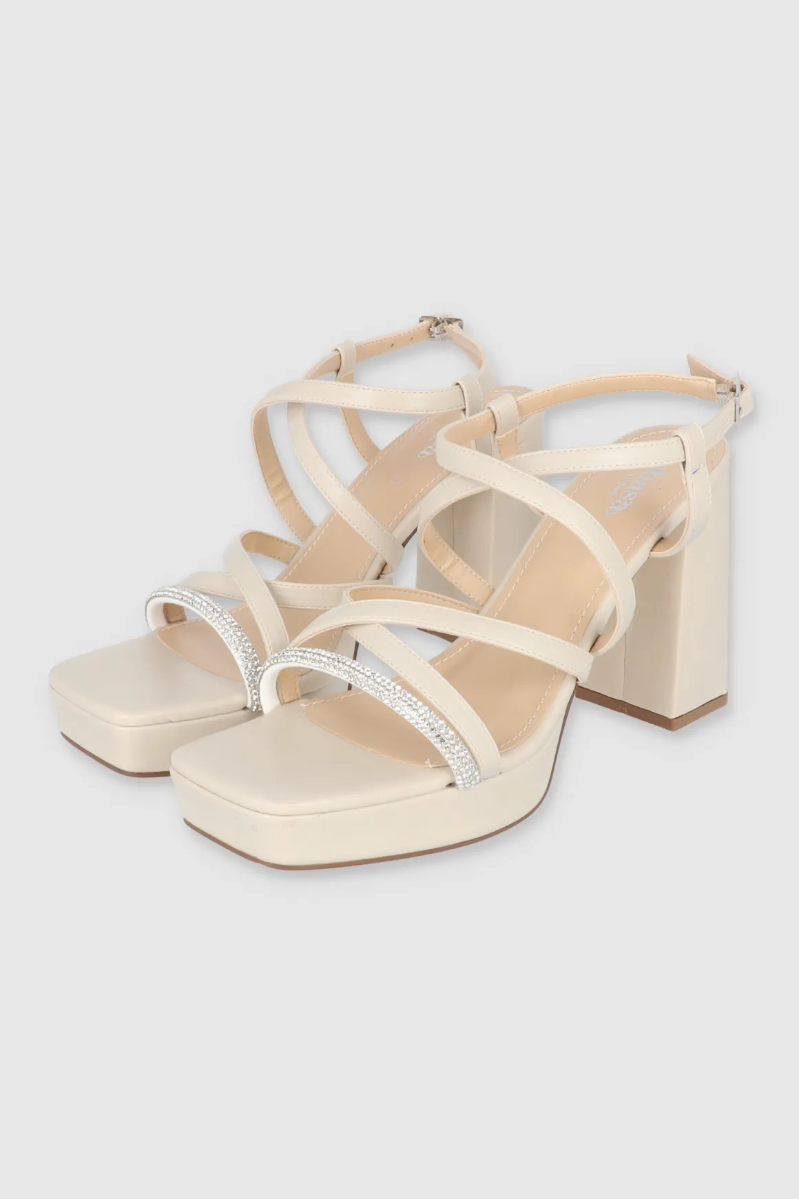 - Multi tiras superiores cruzadas y decoradas con brillos para un toque glamuroso.