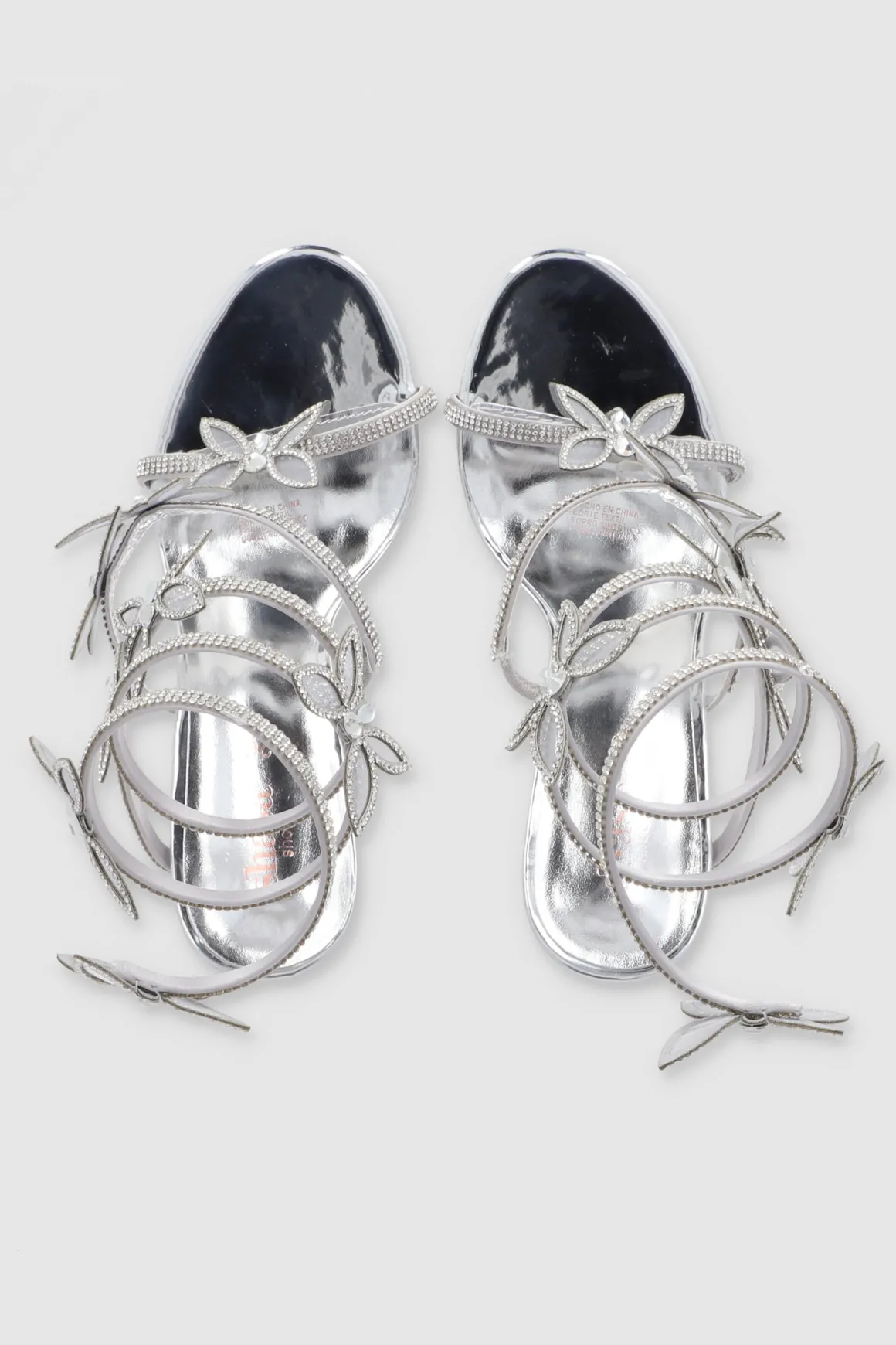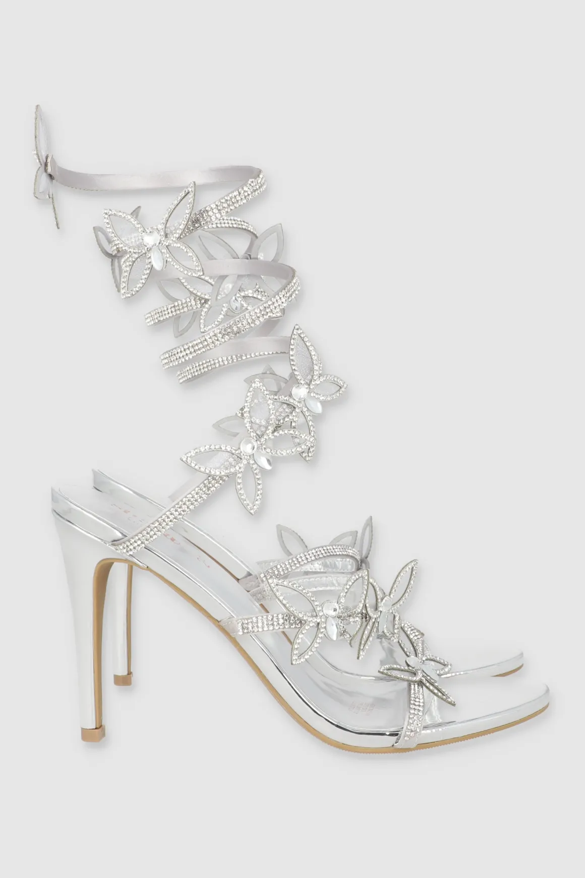 Descubre nuestro Tacón Serpiente Mariposas. Estos zapatos combinan ela pulsera al tobillo con la delicadeza de mariposas, creando un estilo verdaderamente femenino.