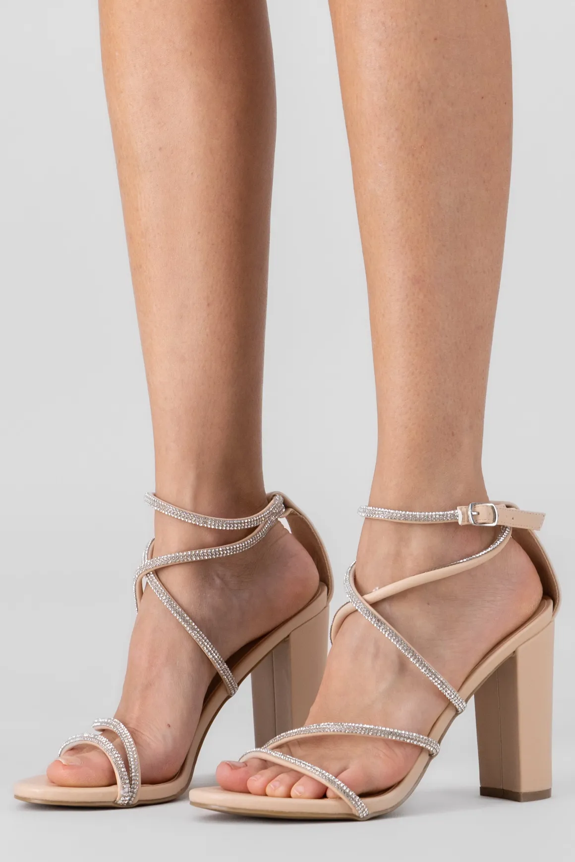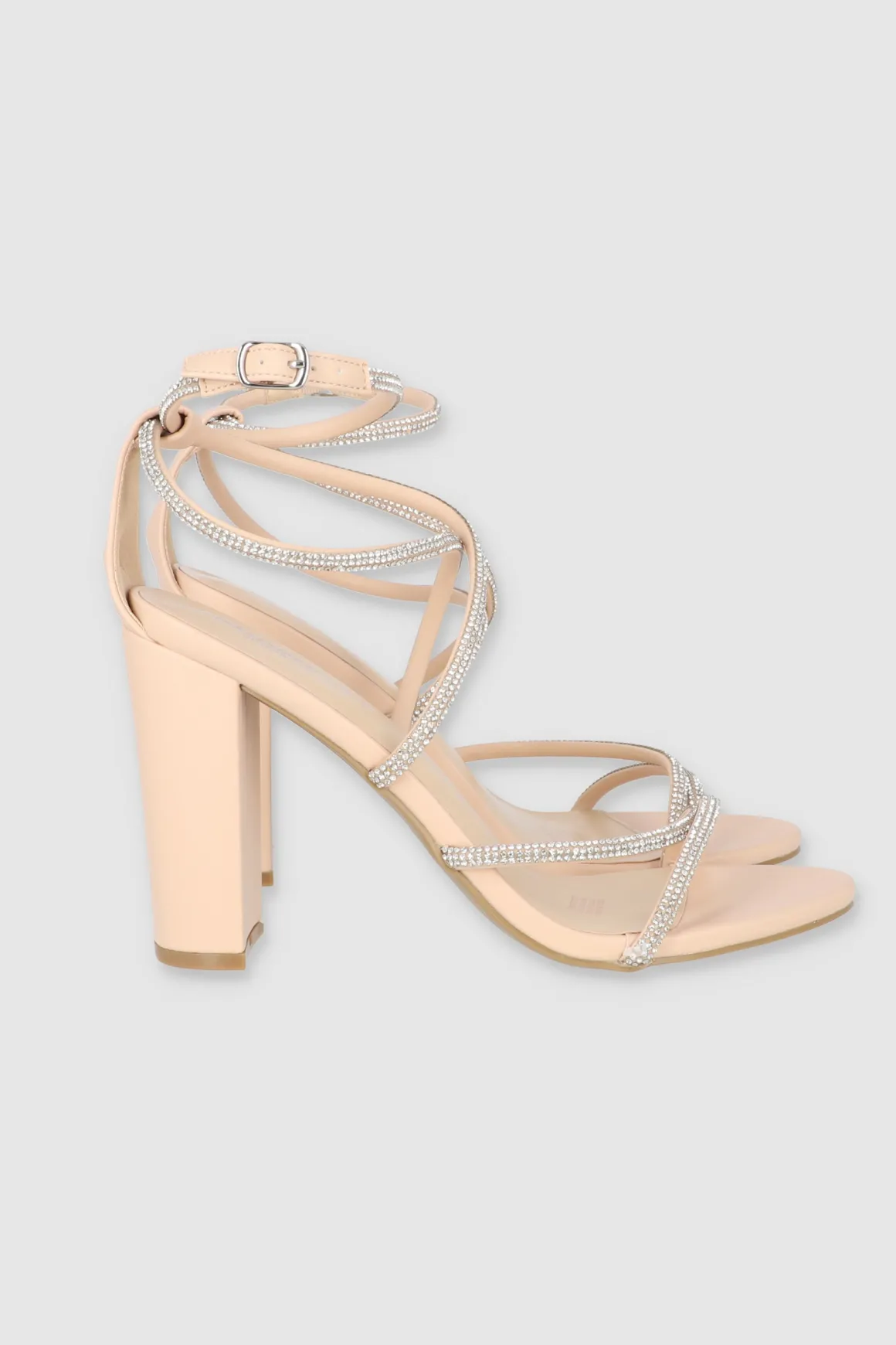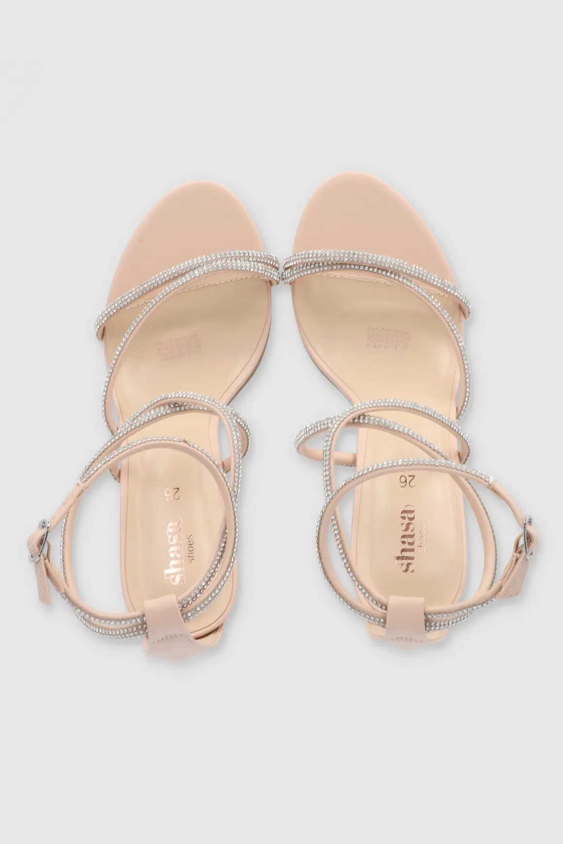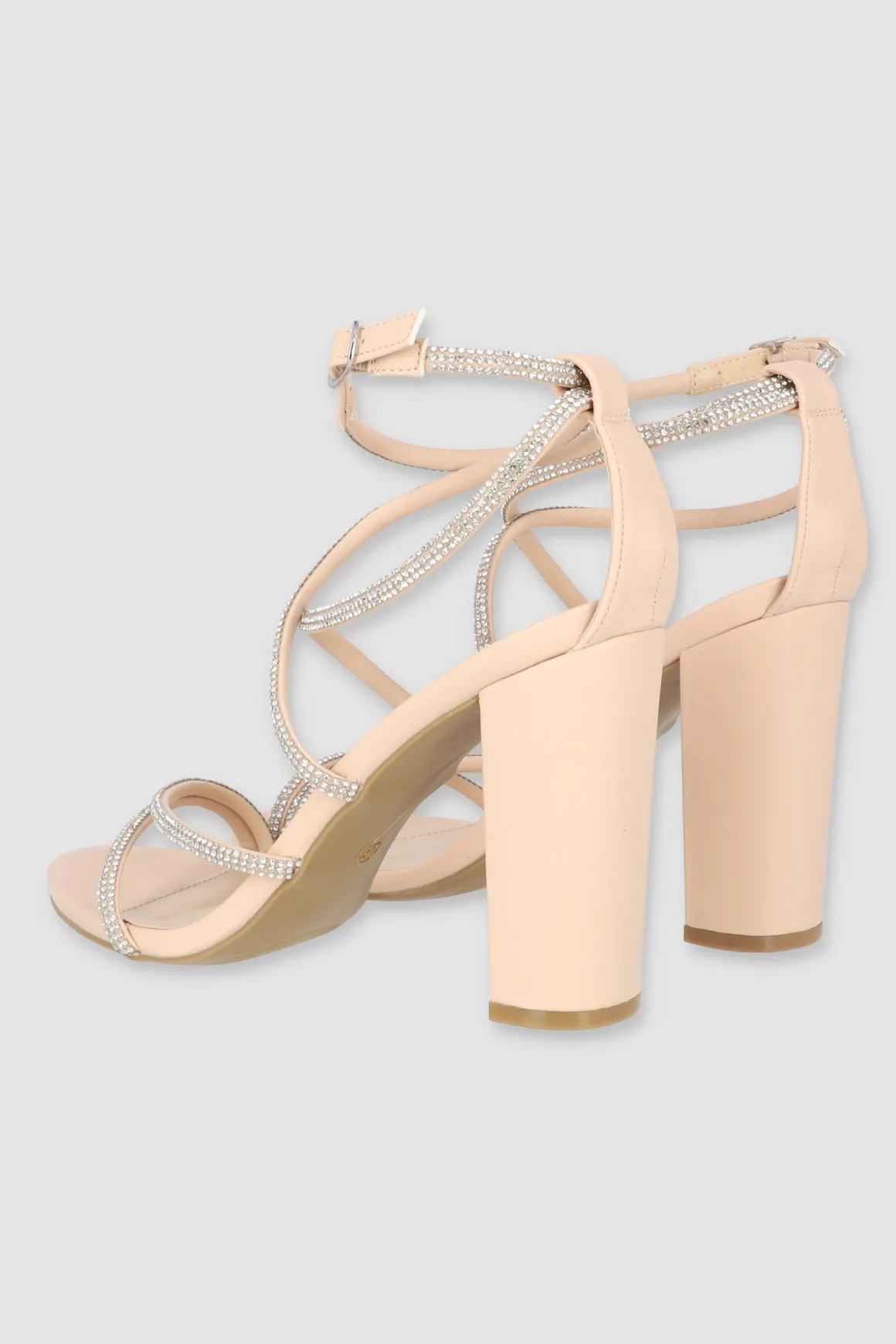 ¡Brilla con nuestros tacones con tiras brillantes en diagonal sobre el empeine y forma de cruce en la correa del tobillo! Perfectos para un look elegante y lleno de estilo. Características destacadas: