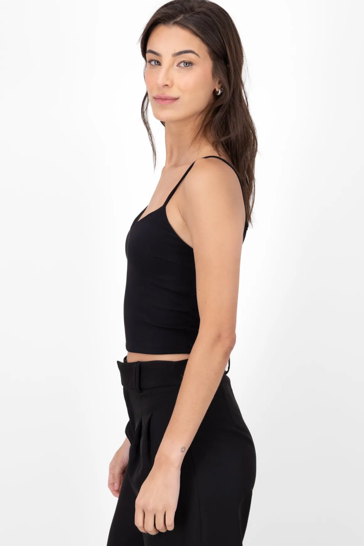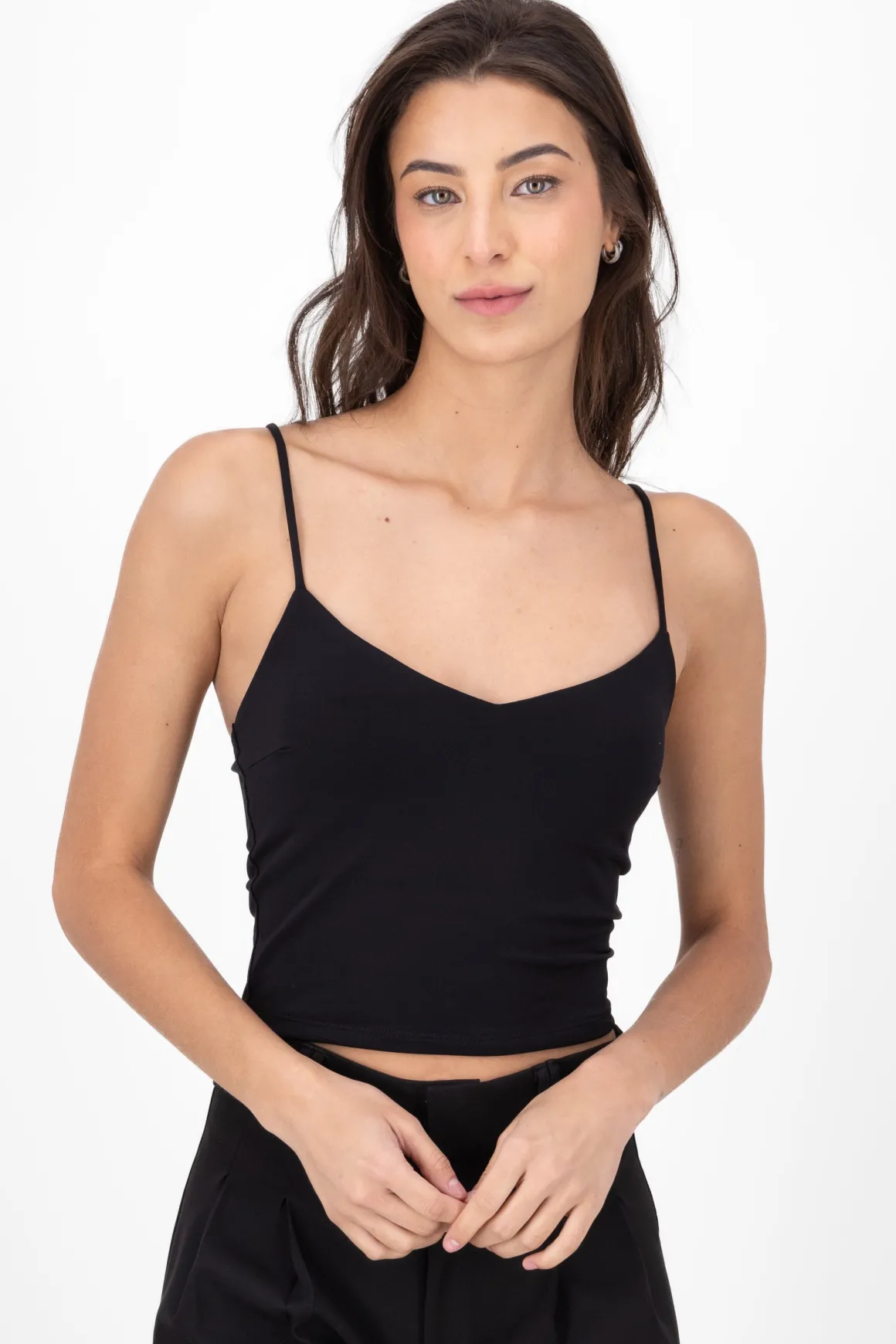 Añade un toque moderno a tu guardarropa con nuestro top liso de tirantes delgados. Con un escote en V que realza tu figura y copas para un ajuste perfecto, este top es ideal para cualquier ocasión. Ya sea que lo combines con jeans para un look casual o con una falda para una salida nocturna, este top será tu nueva prenda favorita.