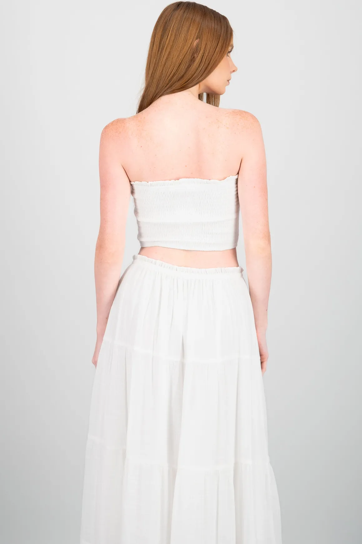 ¡Atrévete a elevar tu estilo con este top! Ideal para esas ocasiones donde quieres lucir divertida y chic, este top bandeau smocked es el toque perfecto para tu outfit.