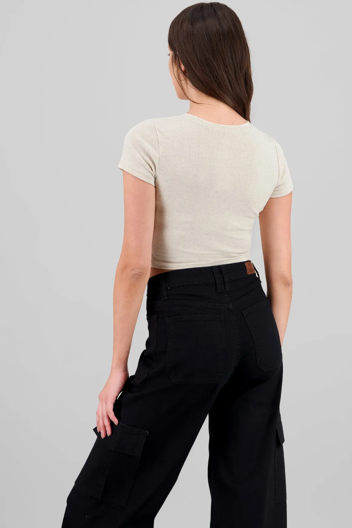 ¡Descubre el must-have de esta temporada que transformará tu guardarropa! Este top de manga corta es la elección perfecta para quienes buscan versatilidad y estilo en un solo diseño.