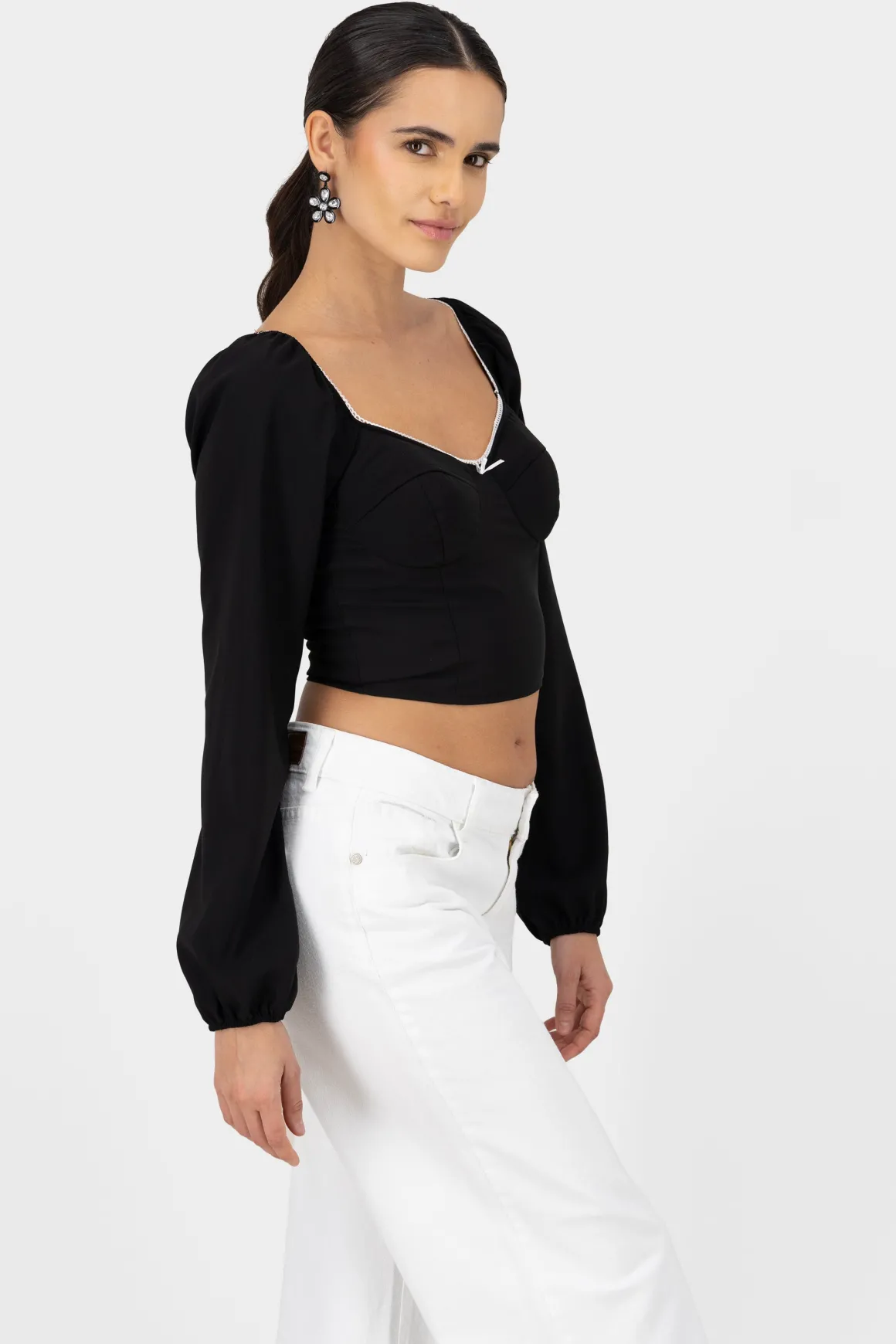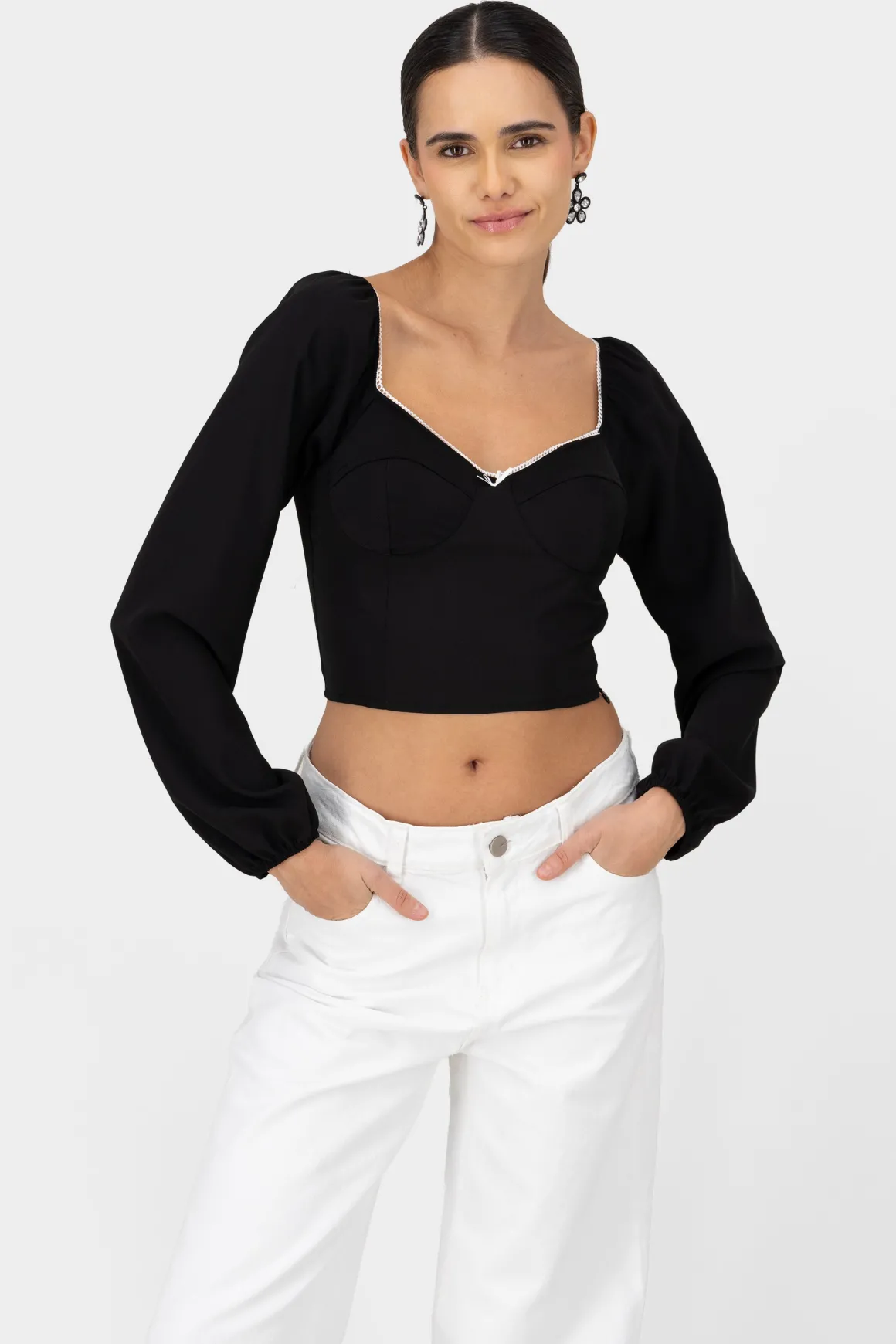 Renueva tu estilo con este top de manga larga abullonada, perfecto para destacar tu look casual.