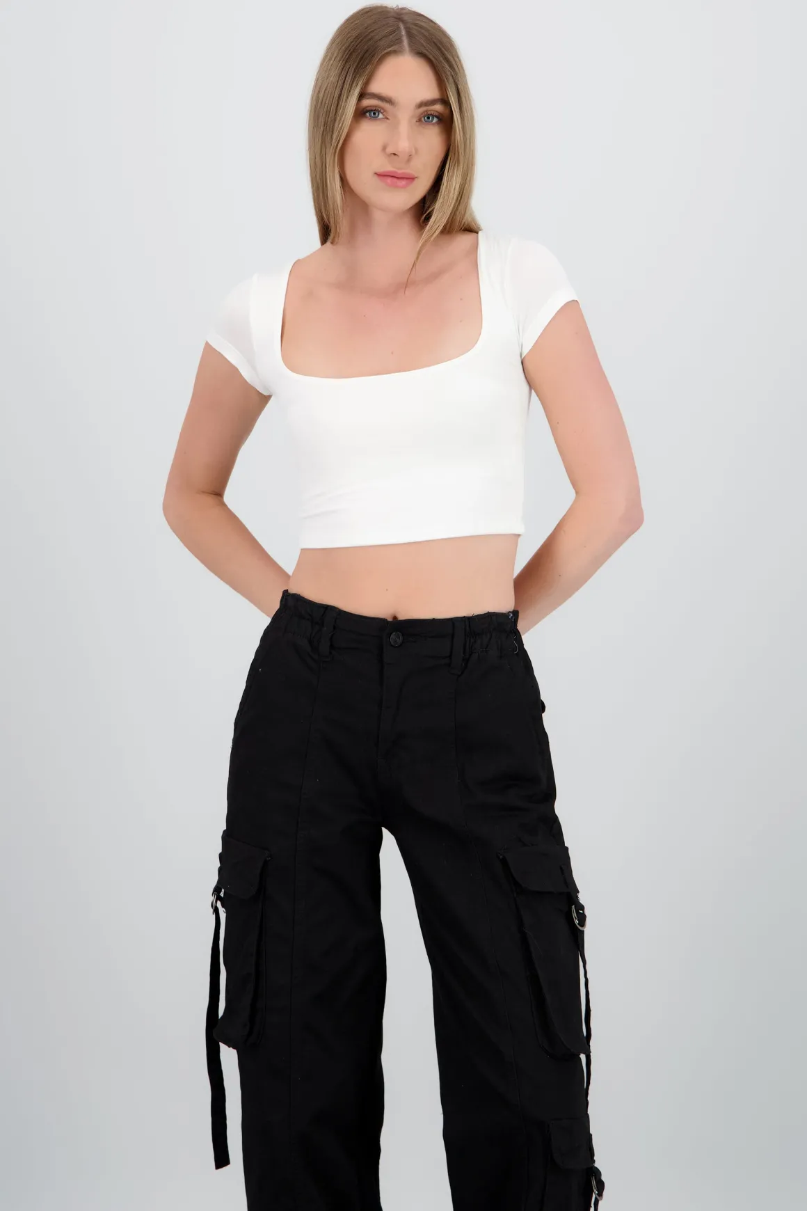- Escote cuadrado que resalta el estilo.
