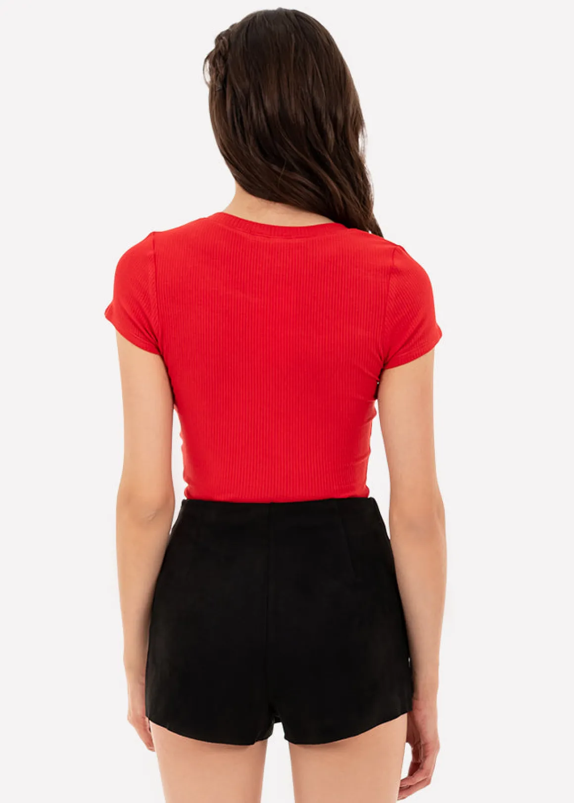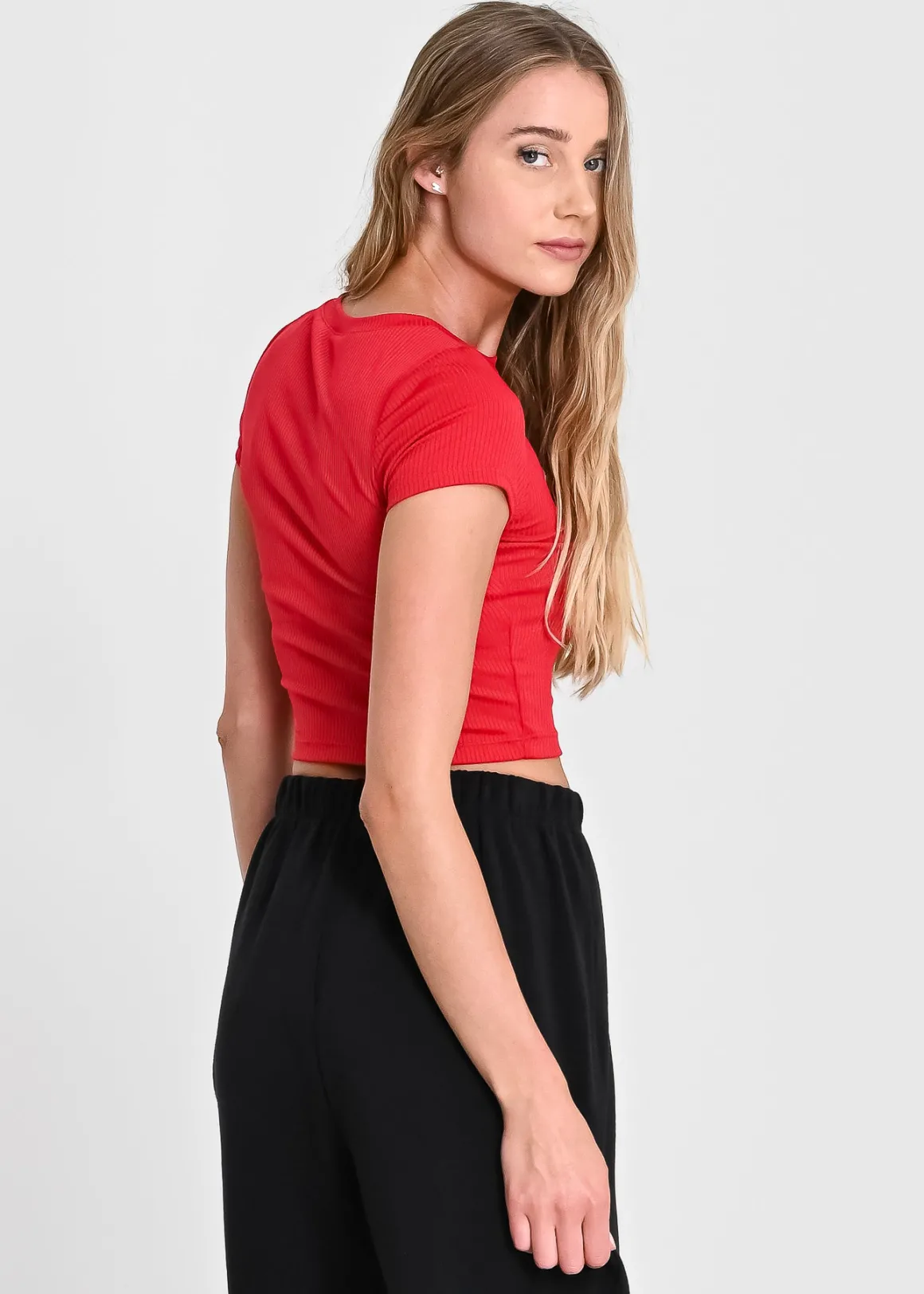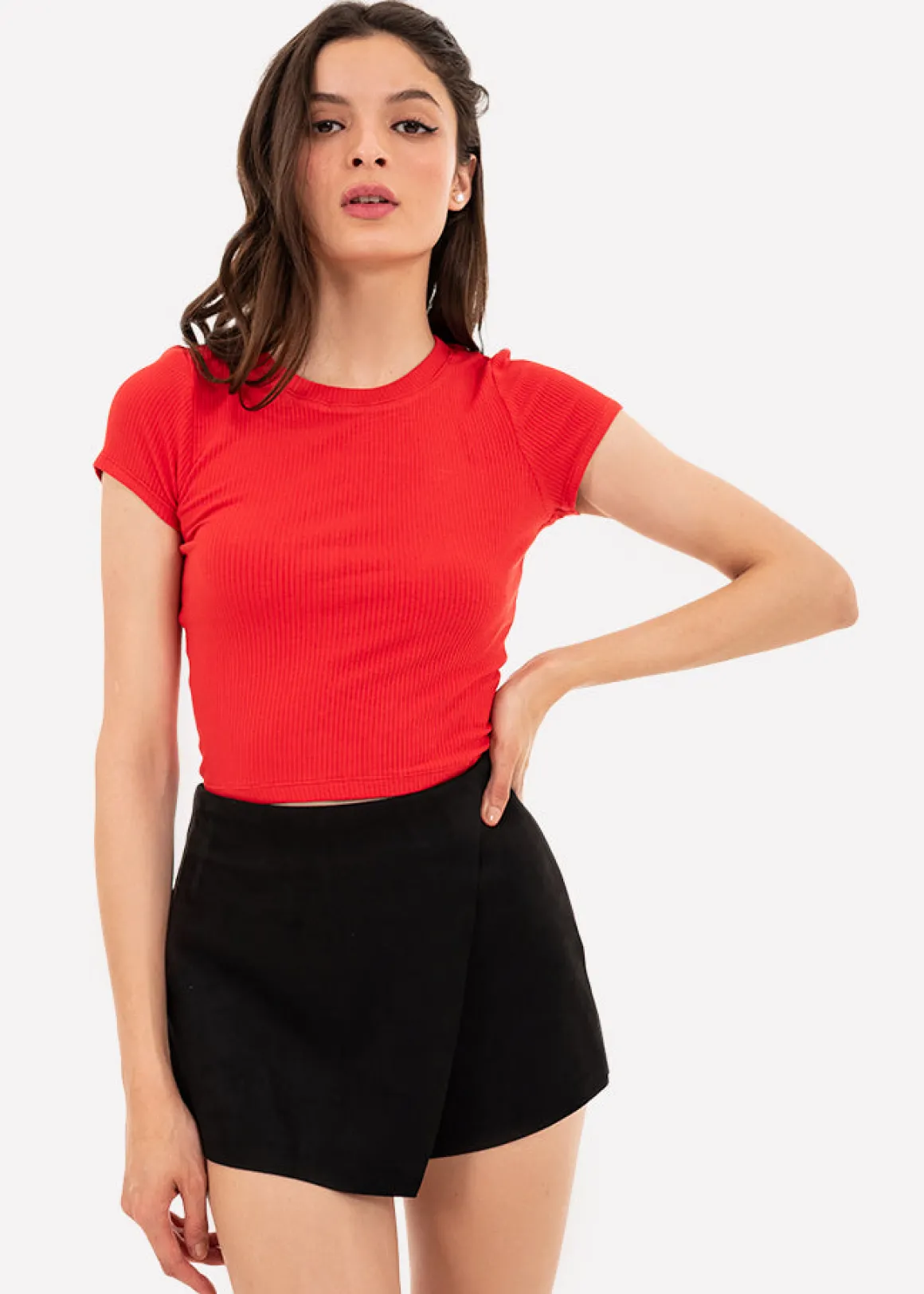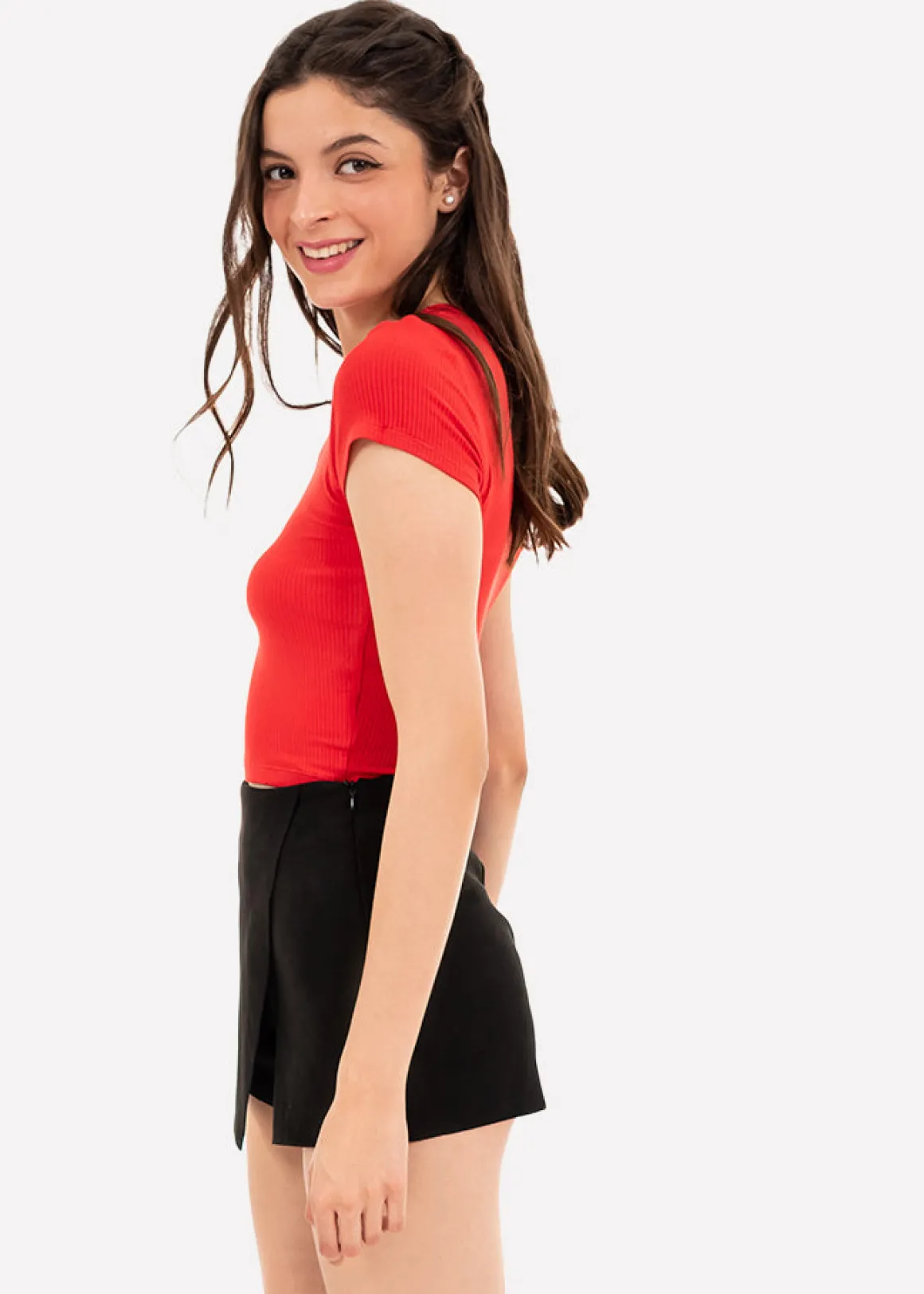 Luce increíble con nuestro top acanalado de manga corta y cuello redondo. Este top está diseñado para brindarte comodidad y estilo en cualquier ocasión. Sus características incluyen: