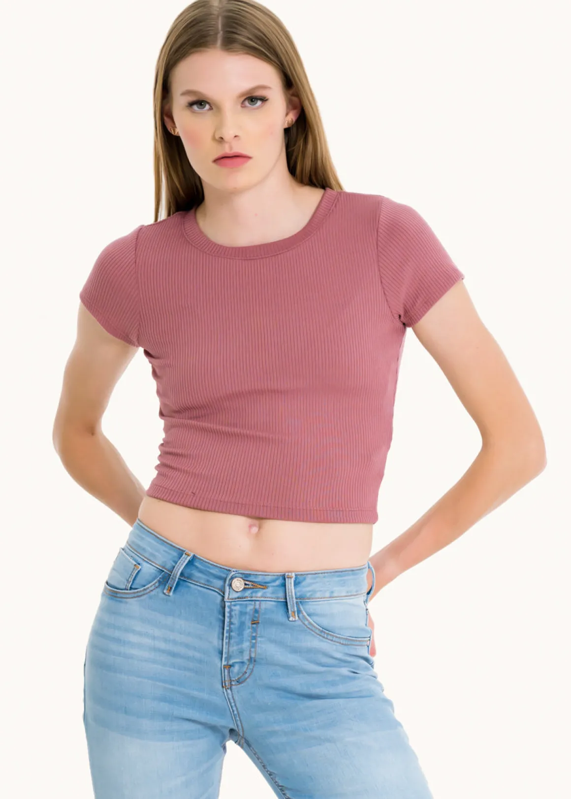 Luce increíble con nuestro top acanalado de manga corta y cuello redondo. Este top está diseñado para brindarte comodidad y estilo en cualquier ocasión. Sus características incluyen: